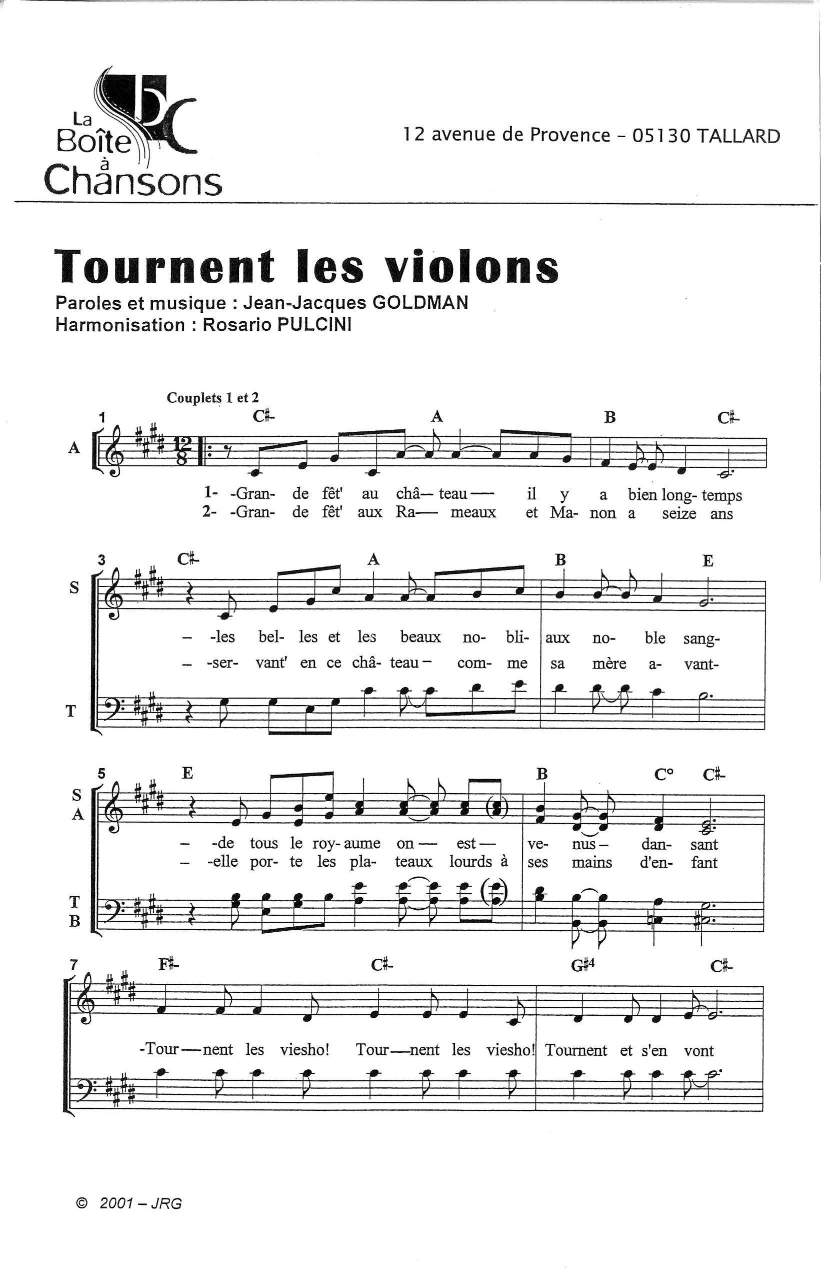 Paroles et musique de GOLDMAN Harmonisation : Rosario PULCINI