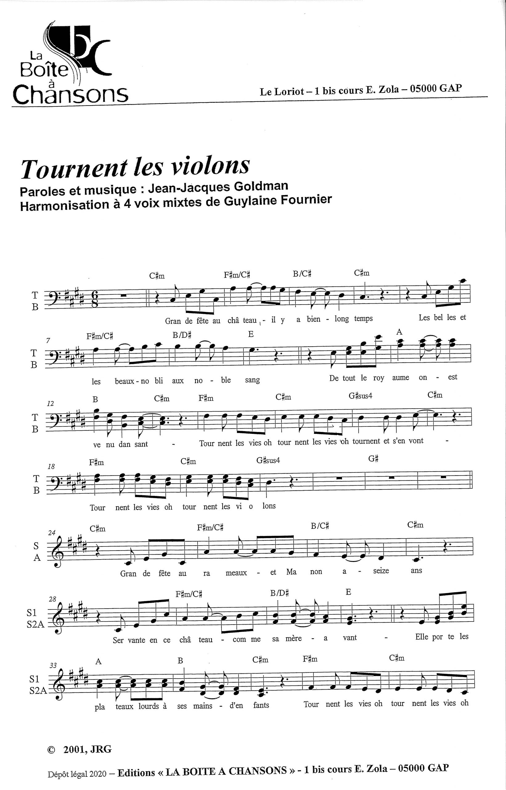 paroles et musique : Goldman Harmonisation : Guylaine Fournier