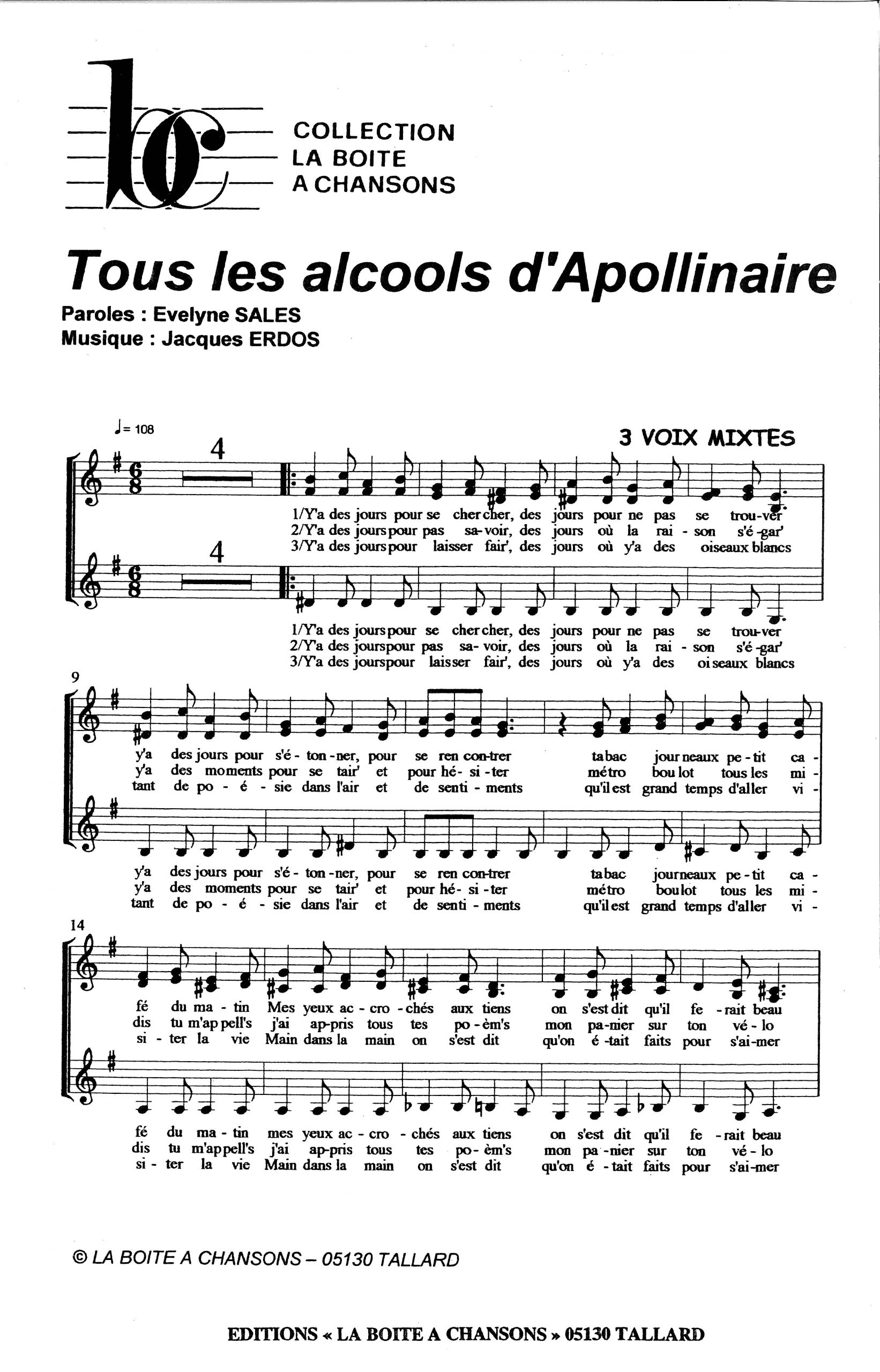 Paroles et musique de SALES/ERDOS Harmonisation : Jacques ERDOS