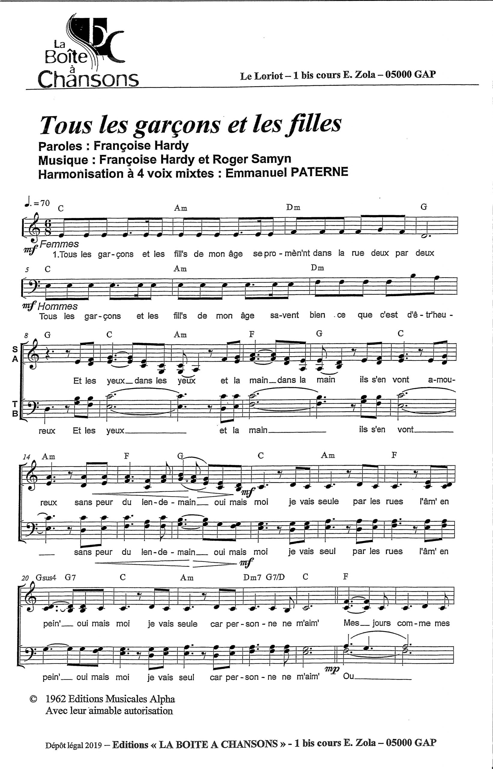 Paroles et musique : F. Hardy / R. Samyn Harmonisation : Emmanuel Paterne