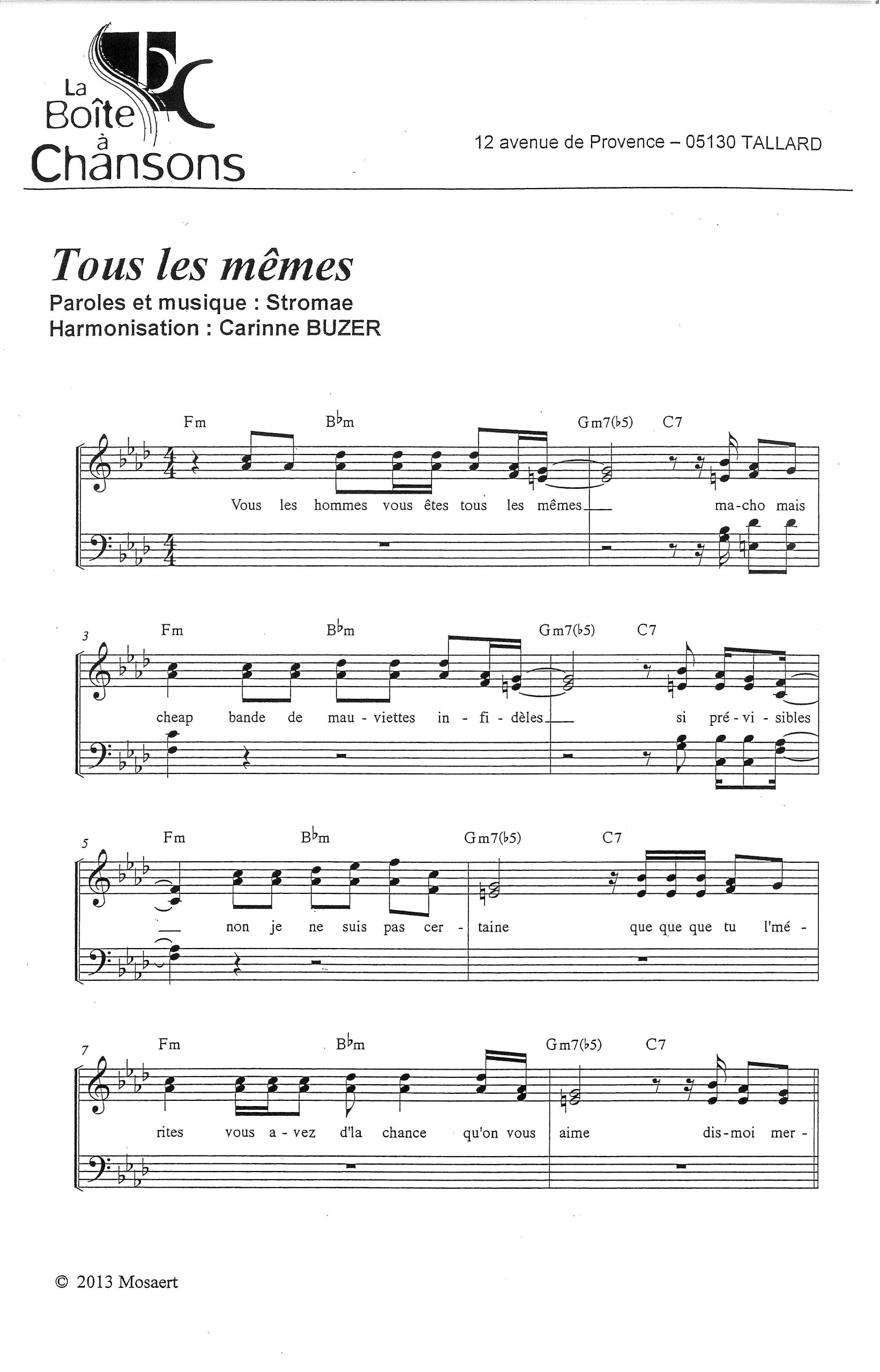 Paroles et musique : Stromae Harmonisation : Carinne BUZER
