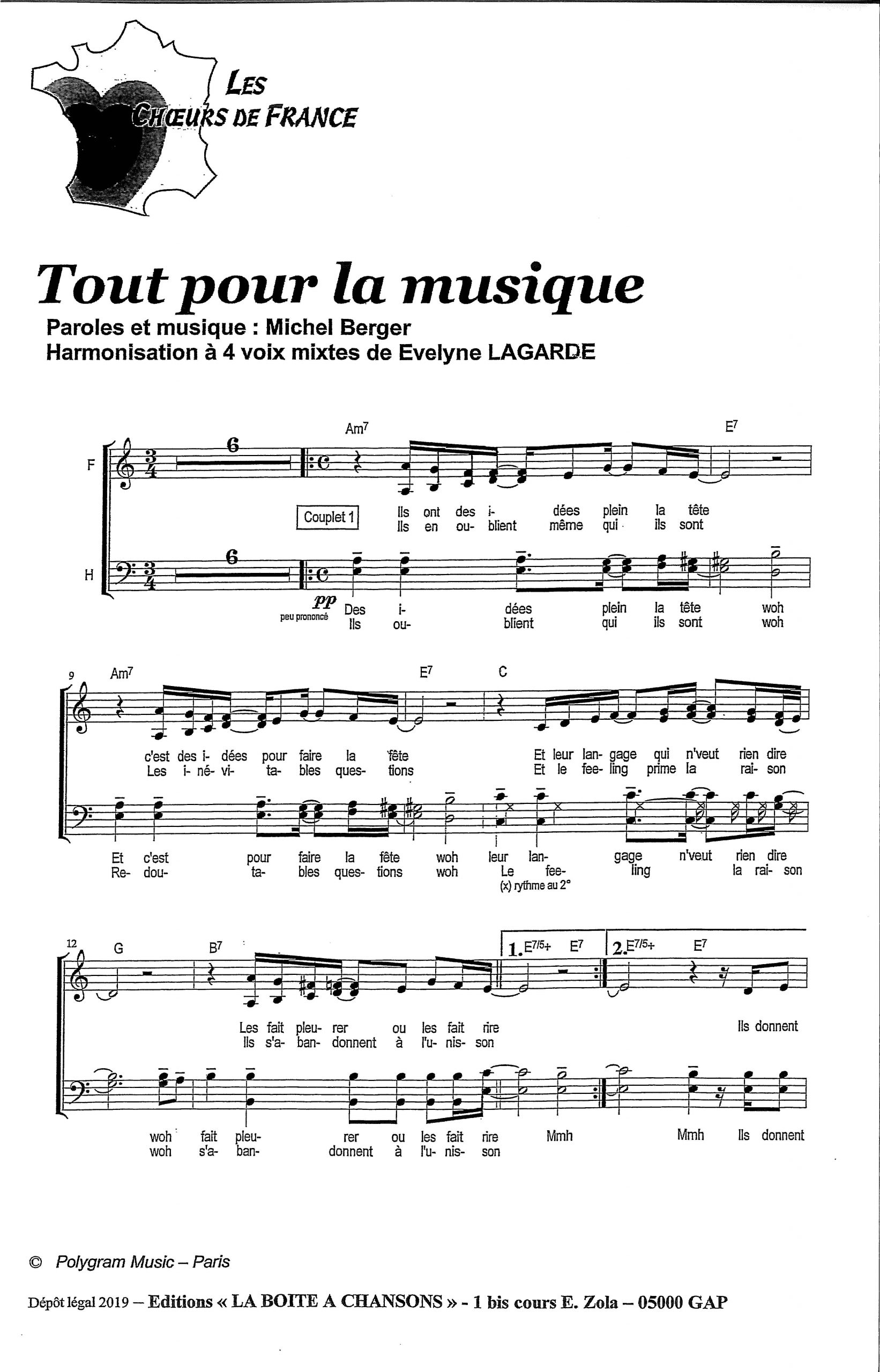 Paroles et musique : M. Berger Harmonisation : Evelyne Lagarde