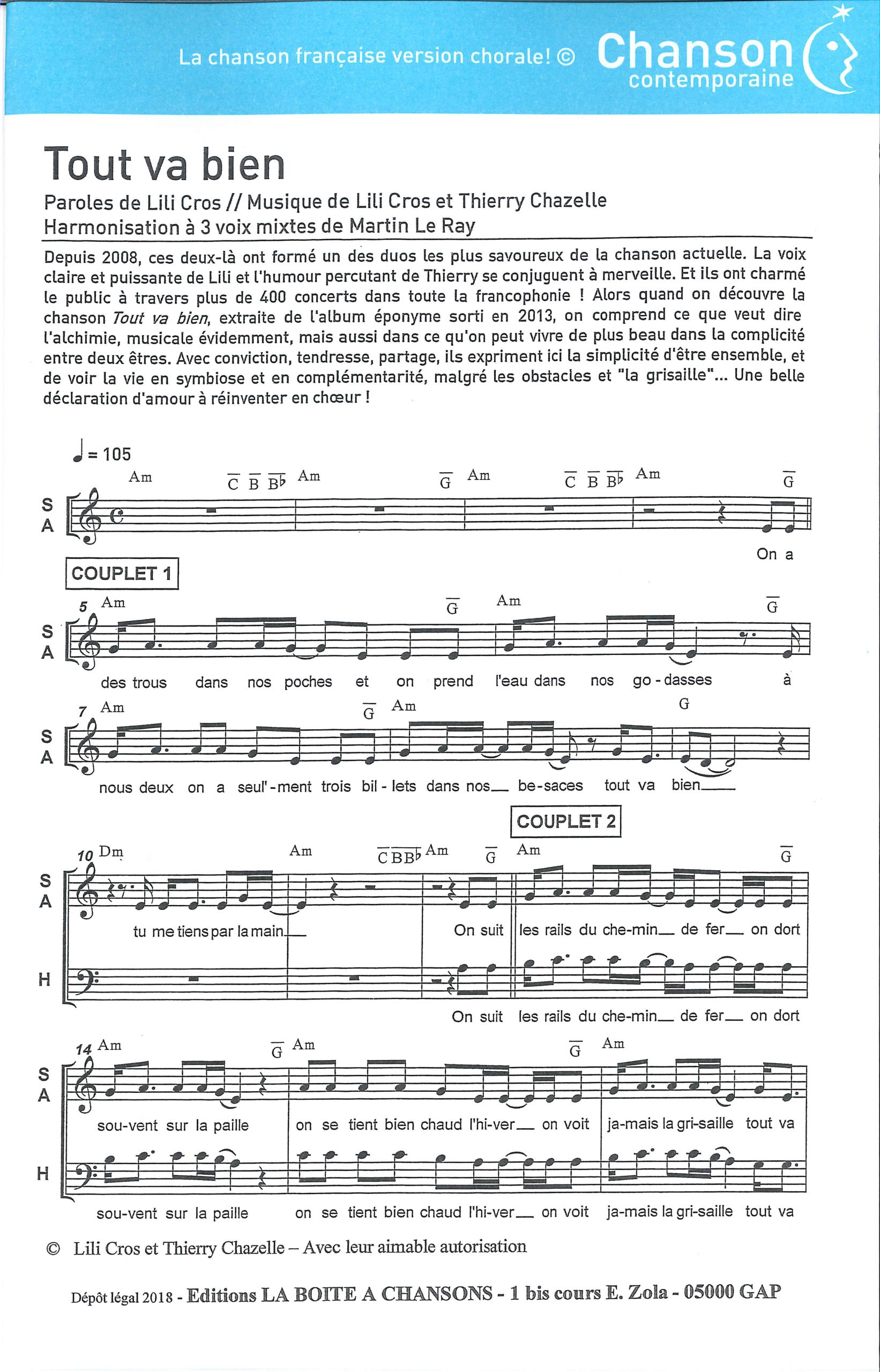 Paroles et musique : L. Cros / T. Chazelle Harmonisation : Martin Le Ray
