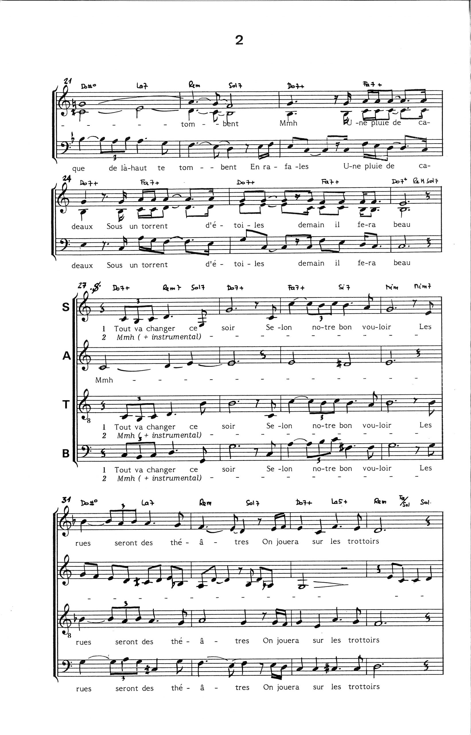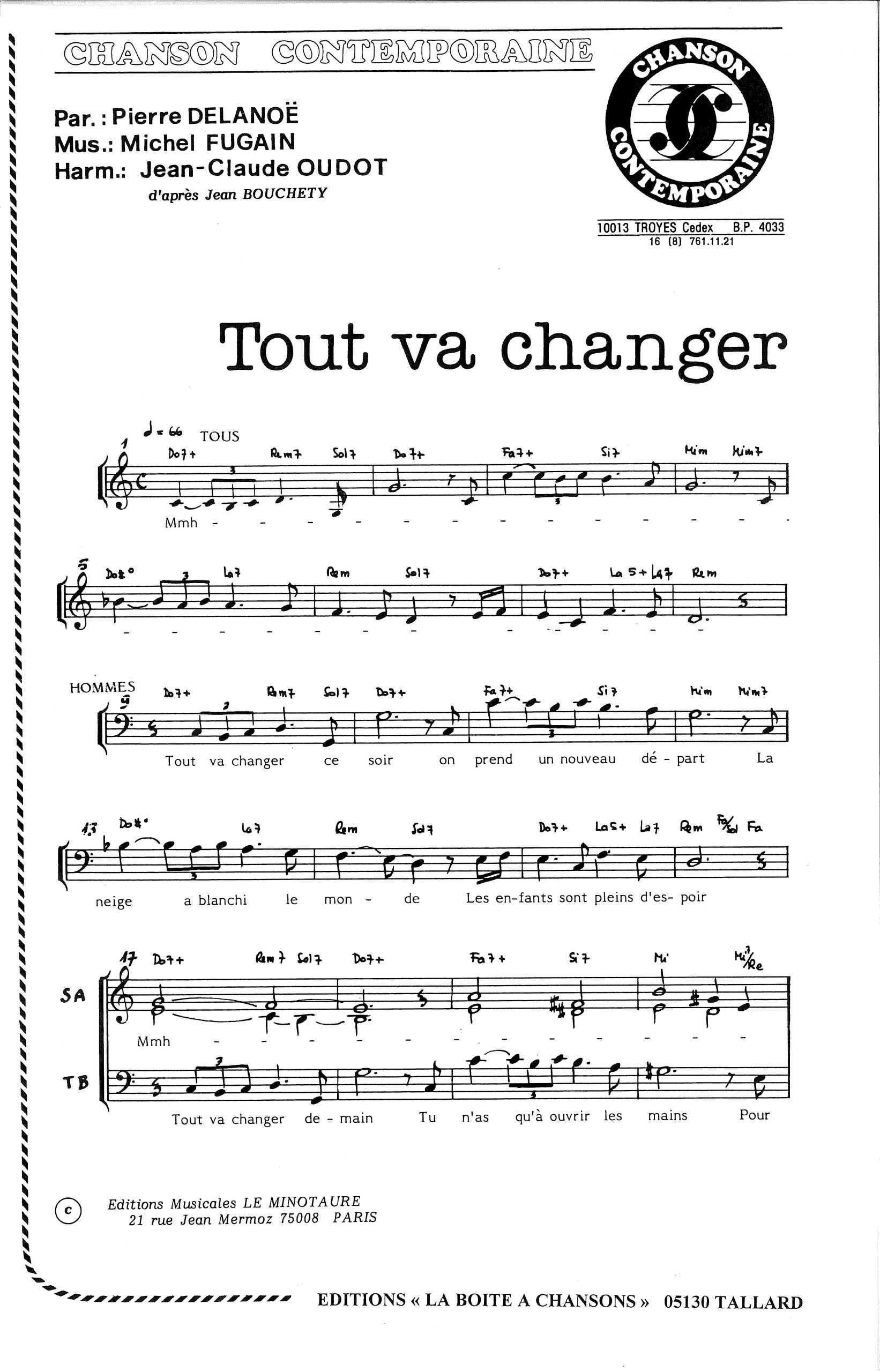 Paroles et musique de DELANOE/FUGAIN Harmonisation : Jean Claude OUDOT
