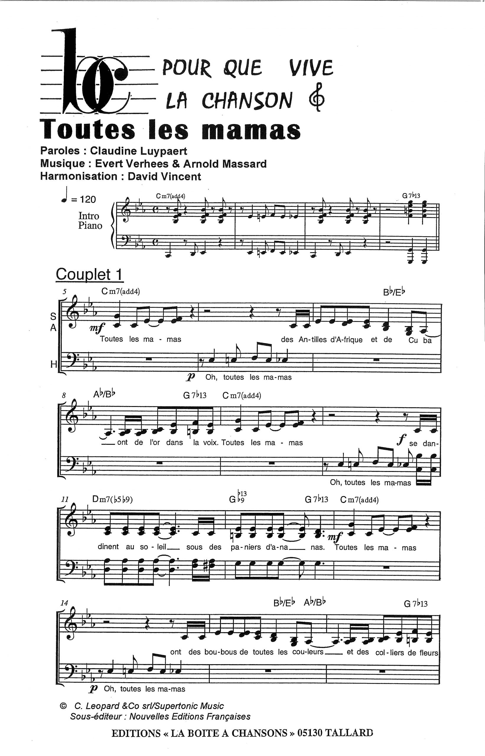 Paroles et musique de MASSARD/VERHEES Harmonisation : David VINCENT