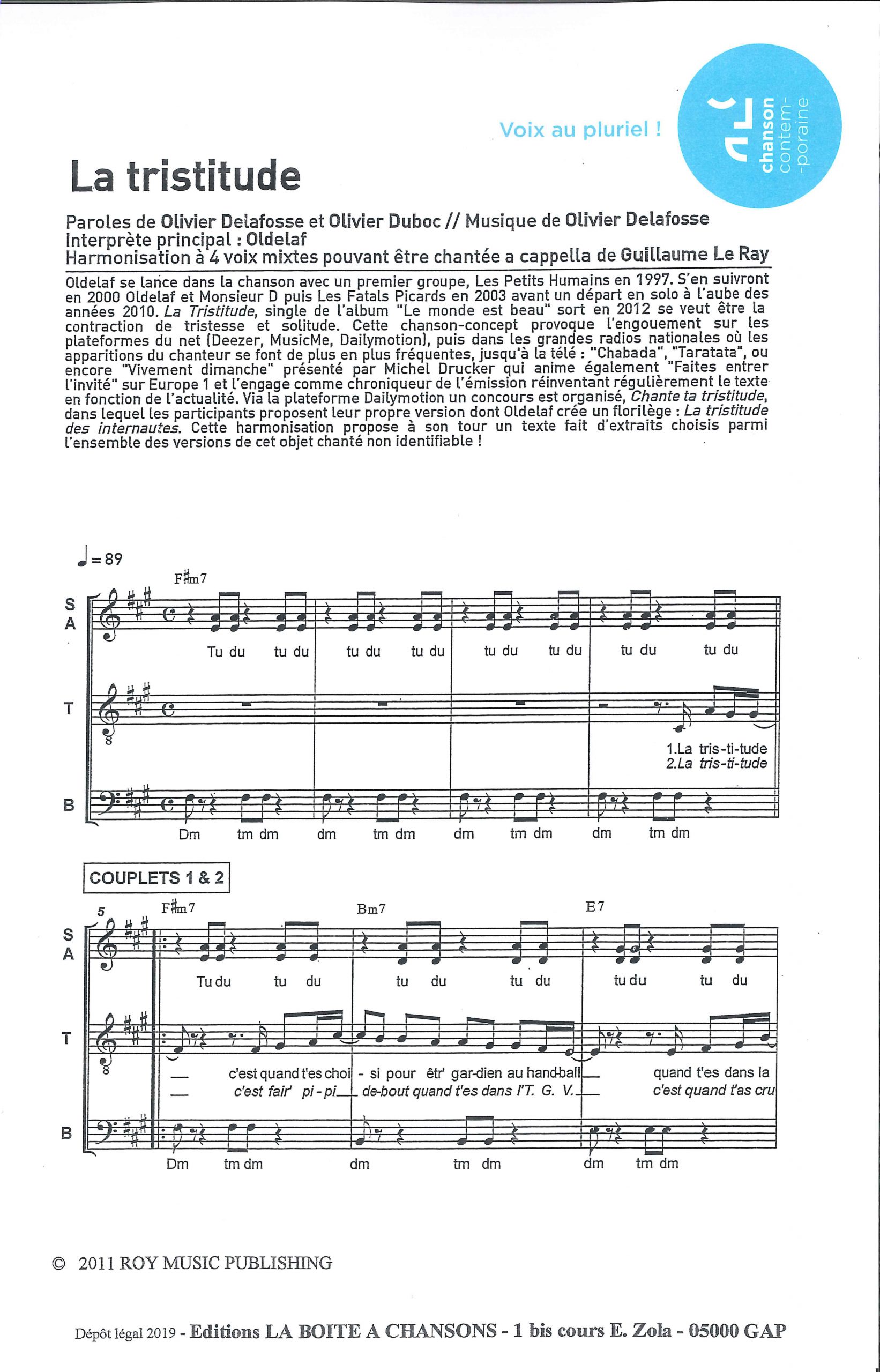 Paroles et musique : O. Delafosse / O. Duboc Harmonisation : Guillaume Le Ray