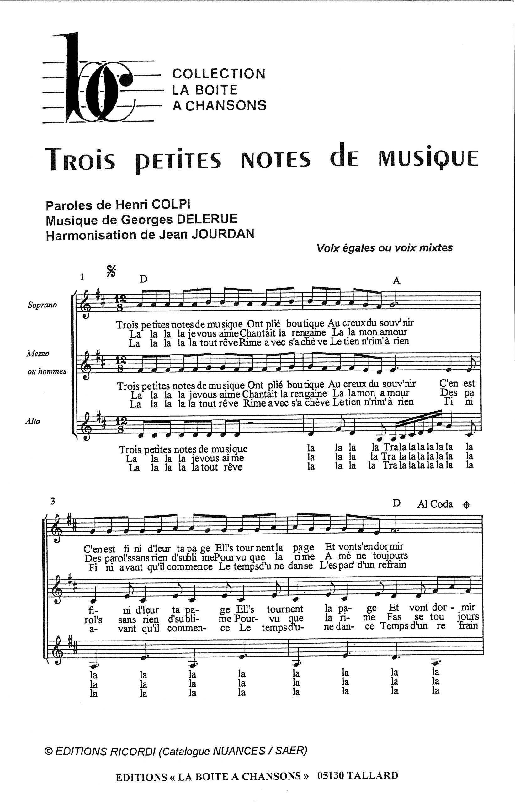 Paroles et musique de COLPI/DELERUE Harmonisation : Jean JOURDAN