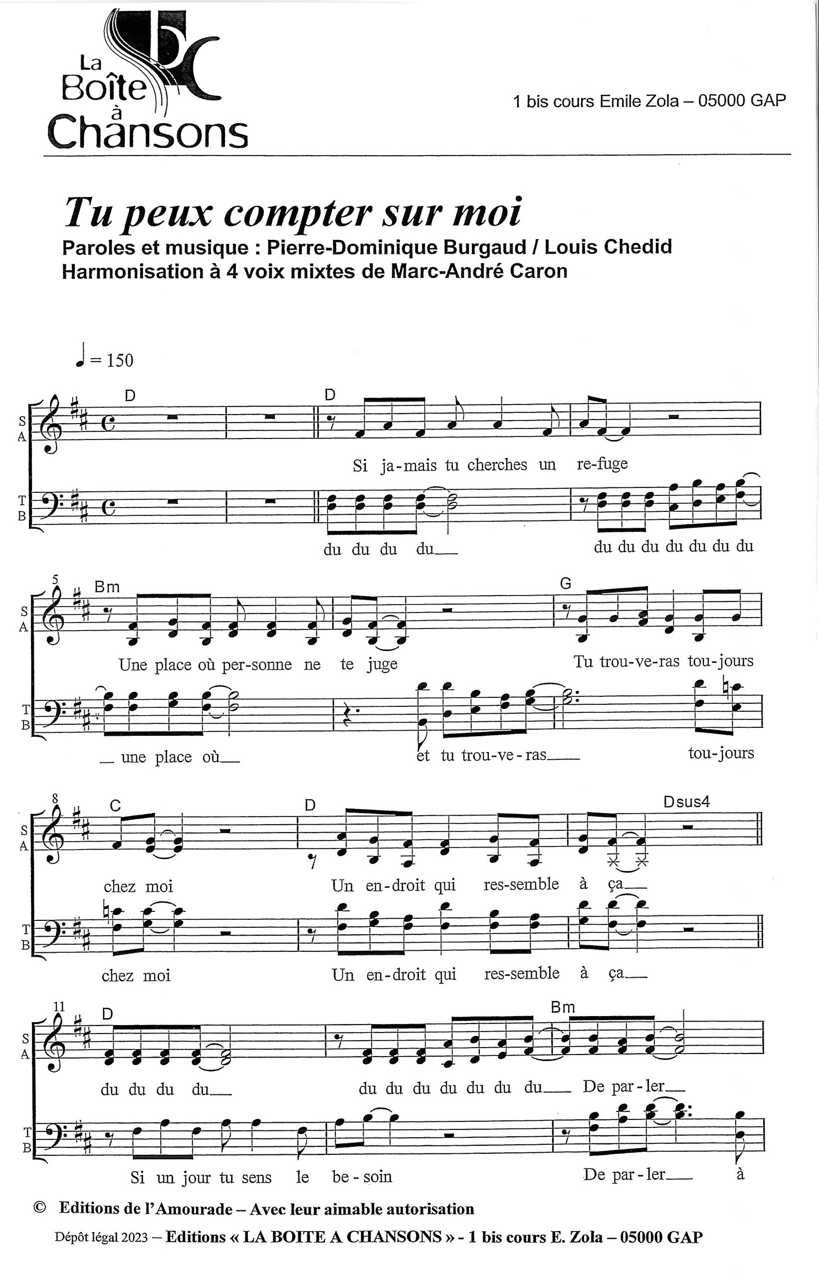 paroles et musique : Chedid Harmonisation : Marc André Caron