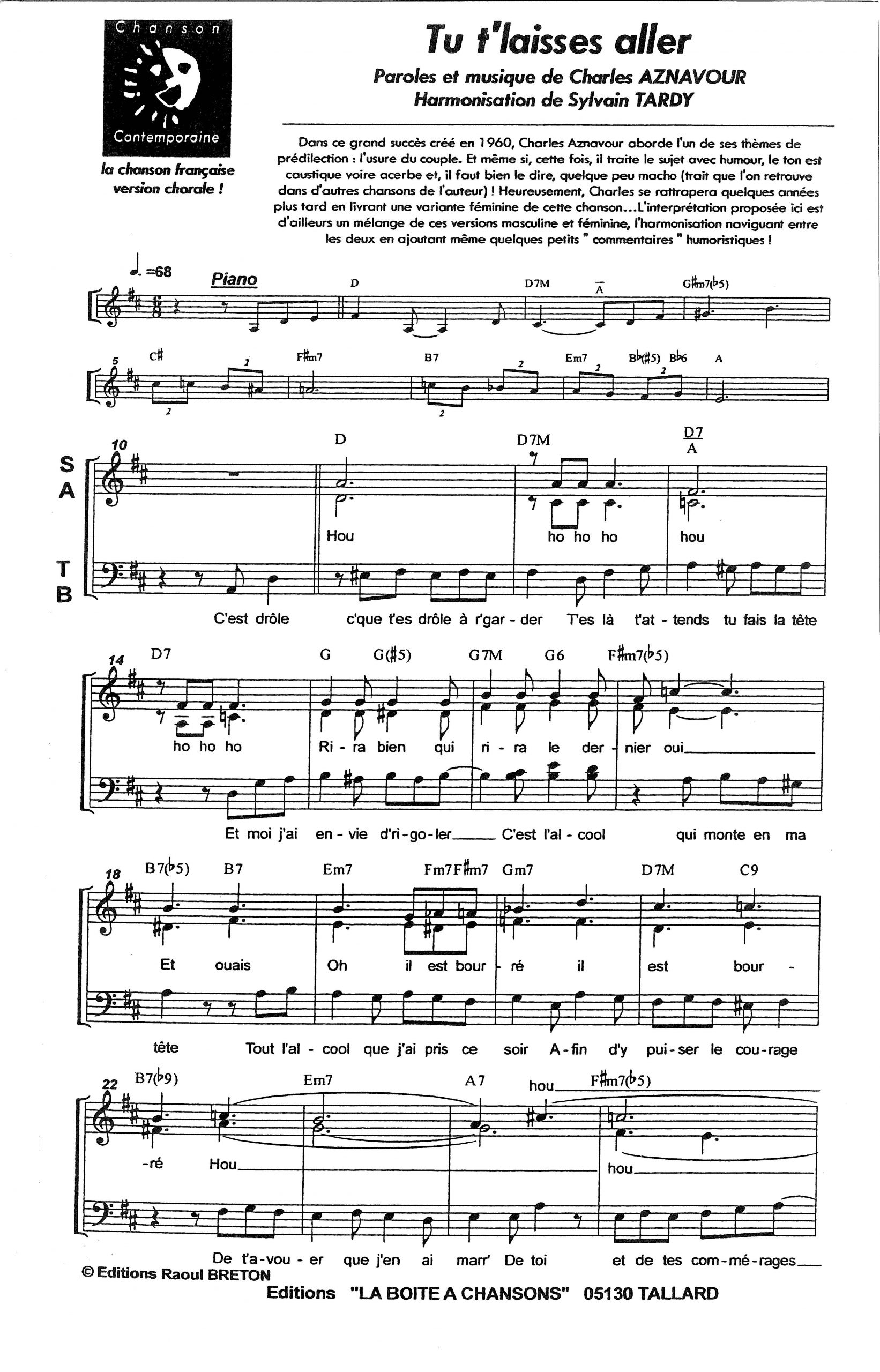 Paroles et musique de AZNAVOUR Harmonisation : Sylvain TARDY
