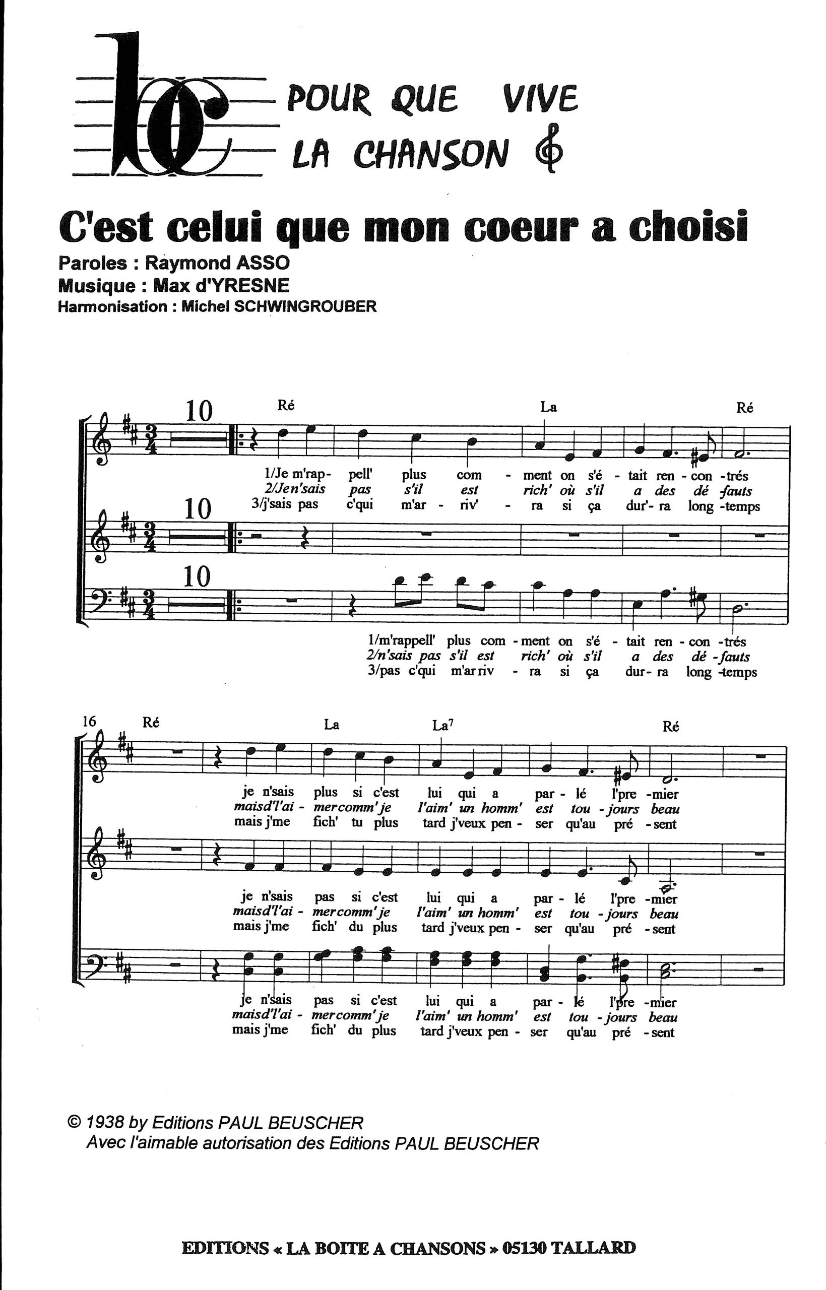 Paroles et musique de ASSO/D’YRESNE Harmonisation : Michel SCHWINGROUBER