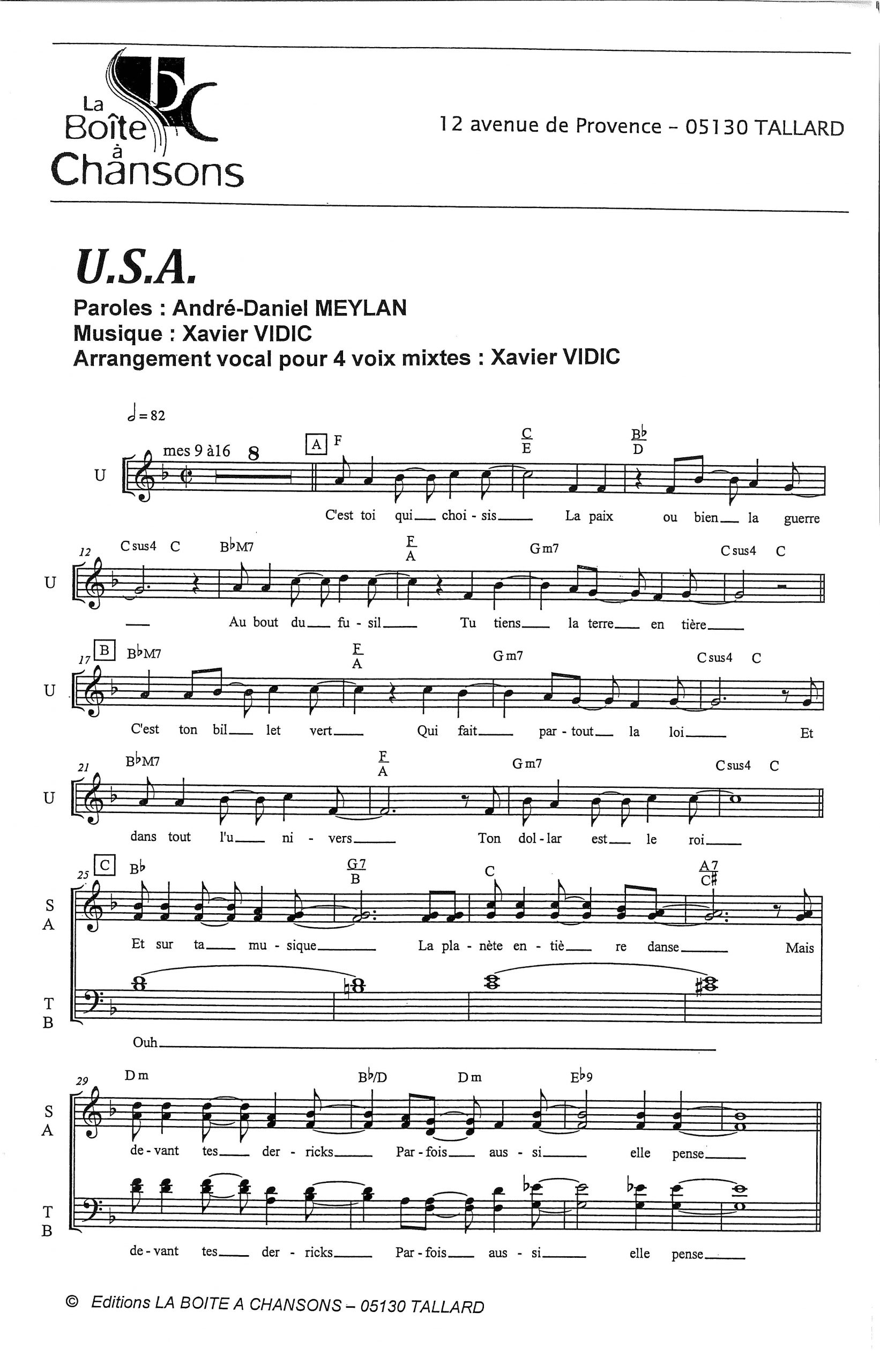 Paroles et musique de MEYLAN/VIDIC Harmonisation : Xavier VIDIC