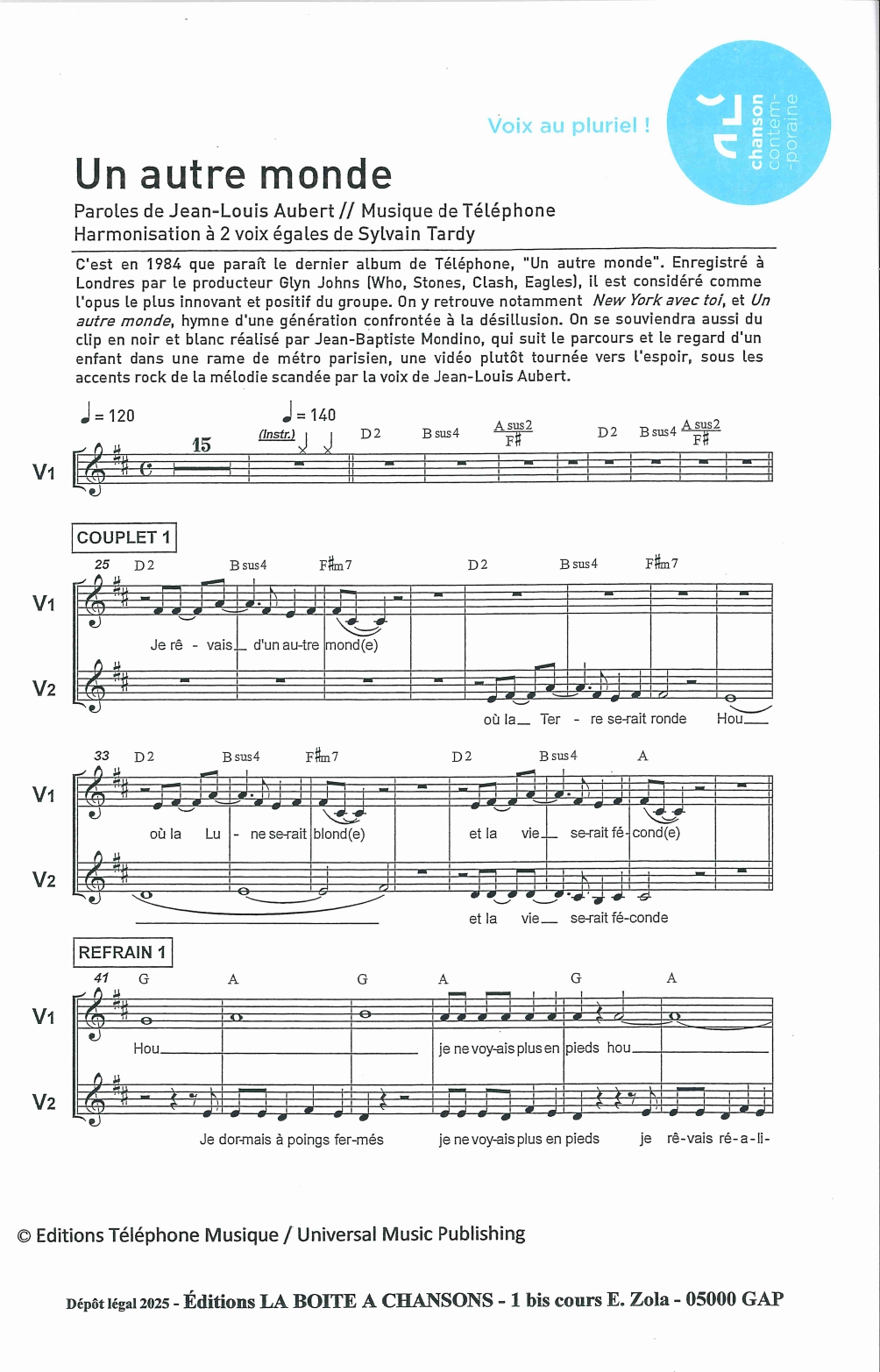 Harmonisation à 2 voix égales de Sylvain Tardy