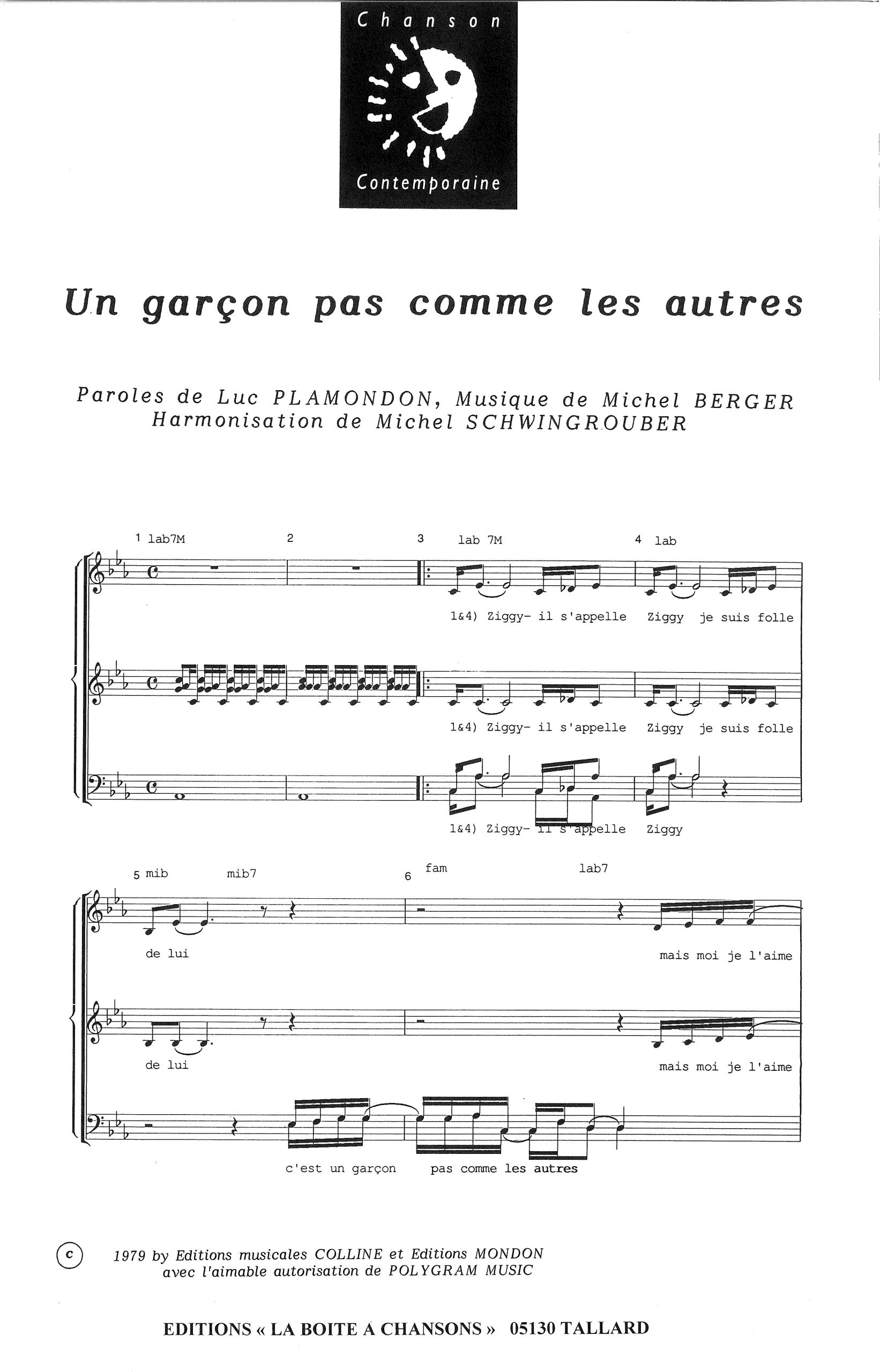 Paroles et musique de PLAMONDON/BERGER Harmonisation : Michel SCHWINGROUBER