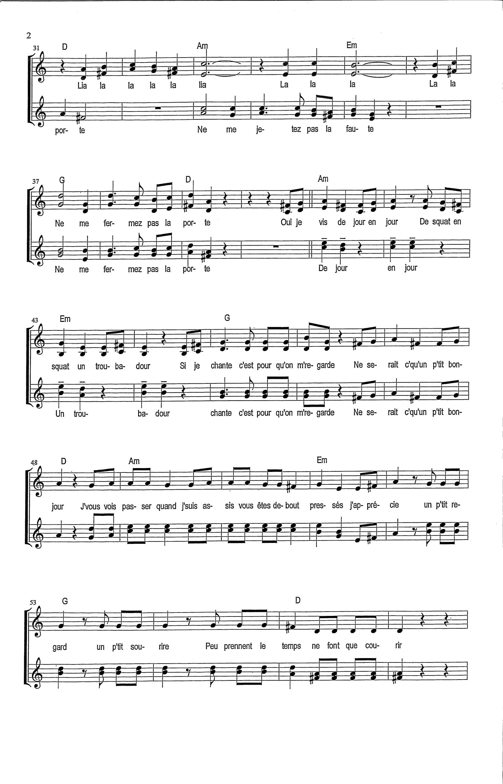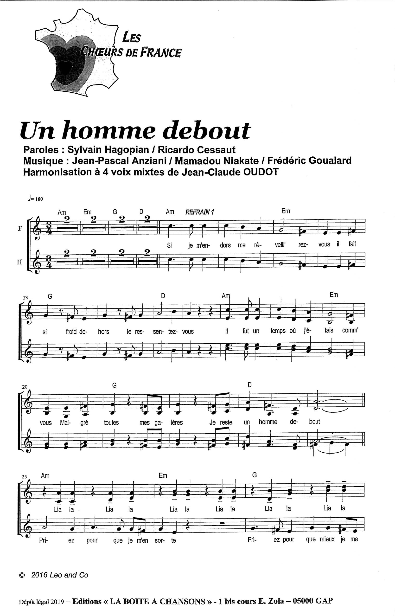 Paroles et musique : S. Hagopian / R. Cessaut / JP Anziani / M. Niakate / F. Goualard Harmonisation : Jean Claude Oudot