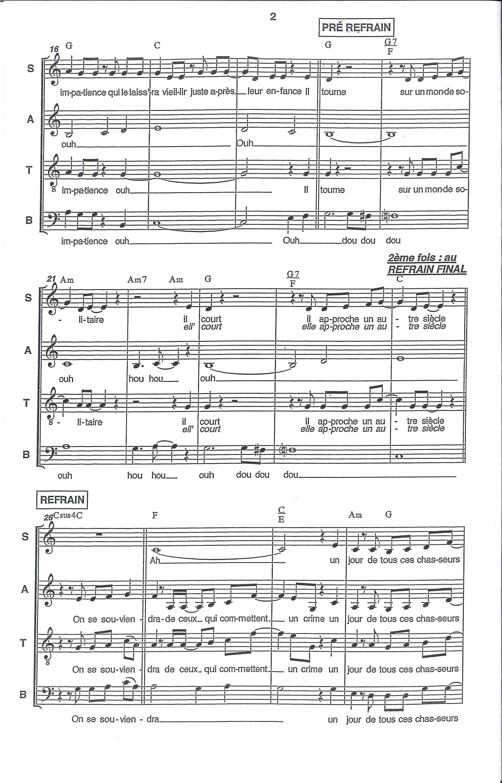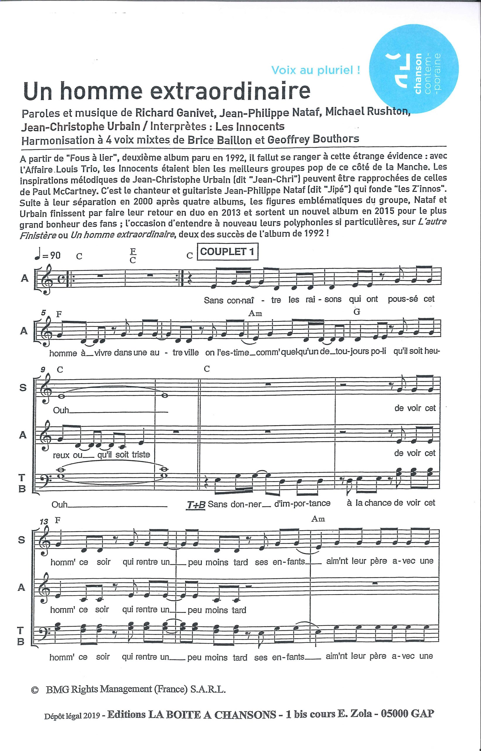 Paroles et musique : Ganivet/Nataf/Rushton Harmonisation : Brice Baillon et Geoffrey Bouthors