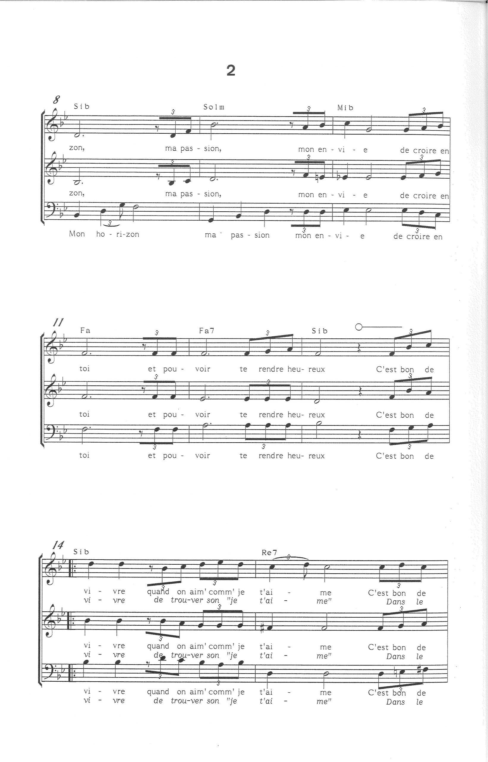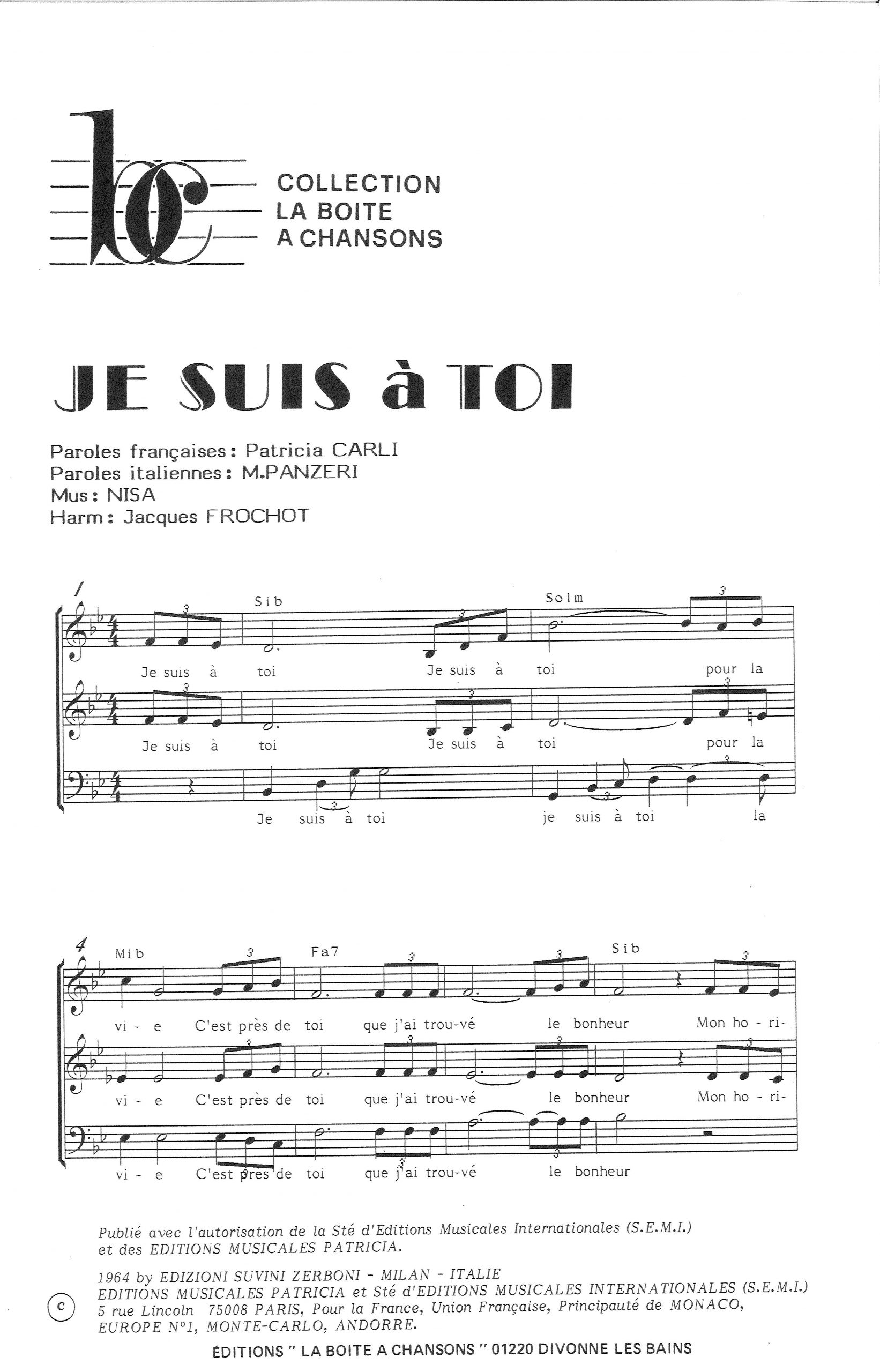 Paroles et musique de PANZERI/CARLI/NISA Harmonisation : Jacques FROCHOT