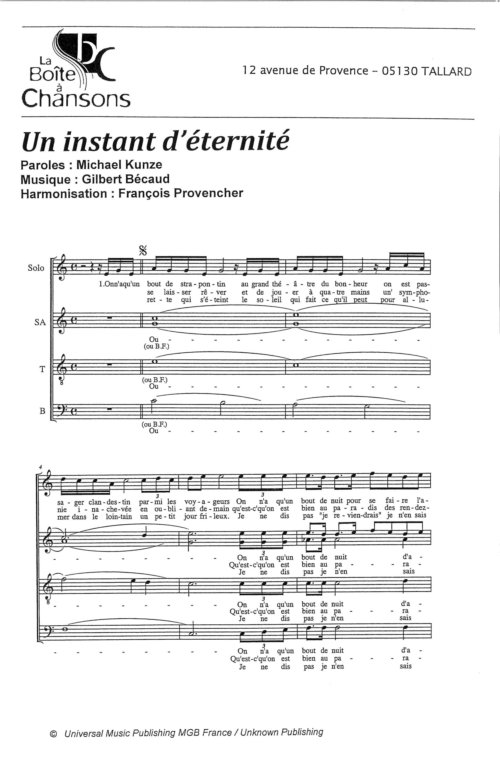 Paroles et musique de KUNZ/BECAUD Harmonisation : Francois PROVENCHER