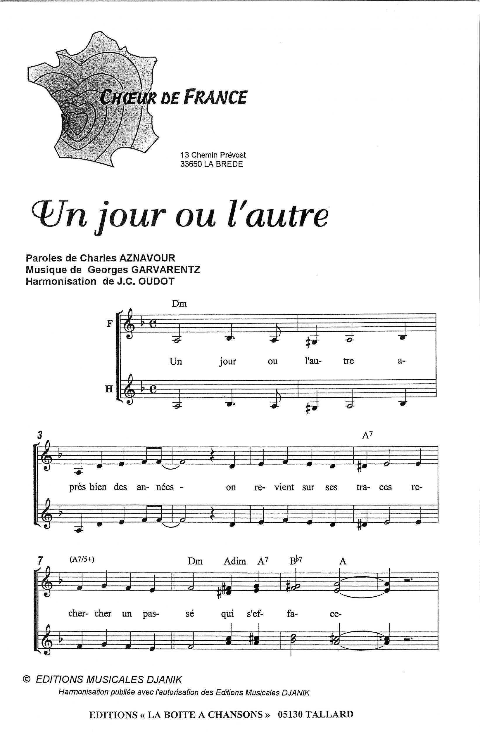 Paroles et musique de AZNAVOUR/GARVARENTZ Harmonisation : Jean Claude OUDOT