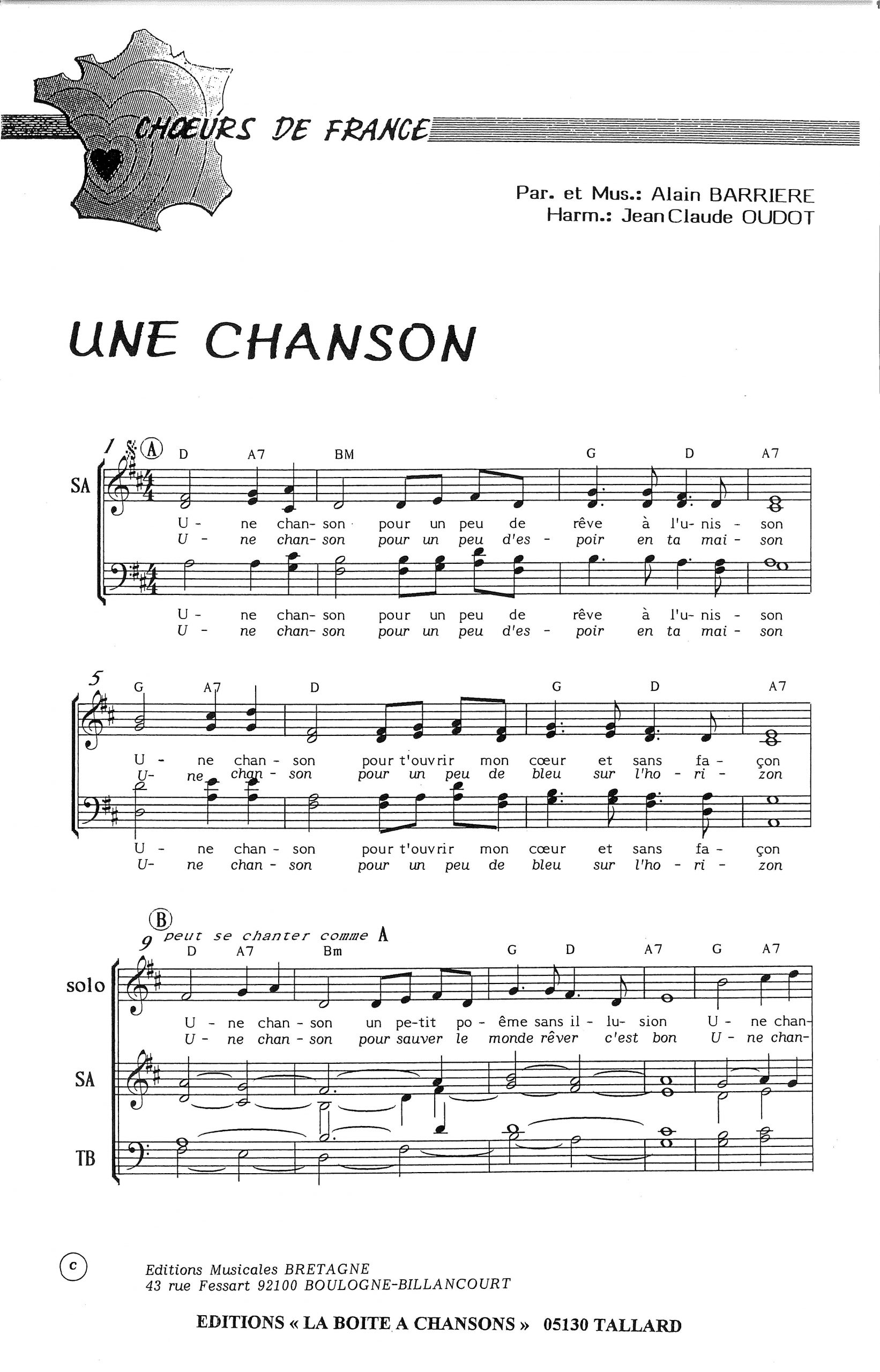 Paroles et musique de BARRIERE Harmonisation : Jean Claude OUDOT