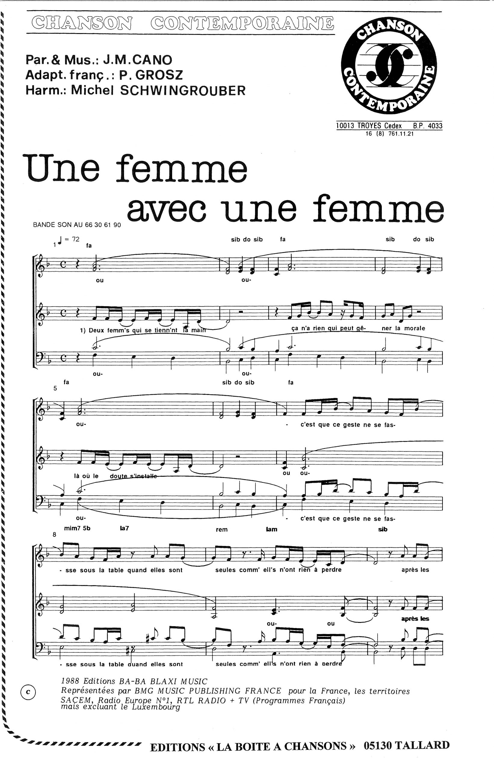 Paroles et musique de CANO/GROSZ Harmonisation : Michel SCHWINGROUBER