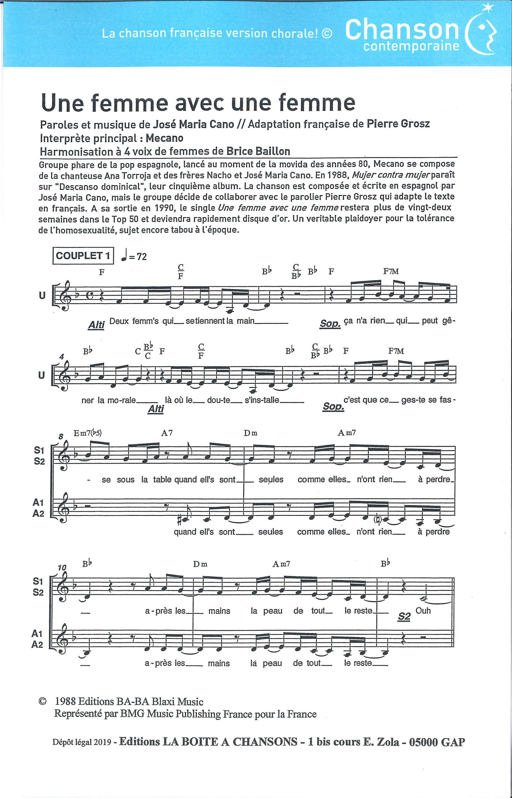 Paroles et musique : J.M. Cano / F. Grosz Harmonisation : Brice Baillon