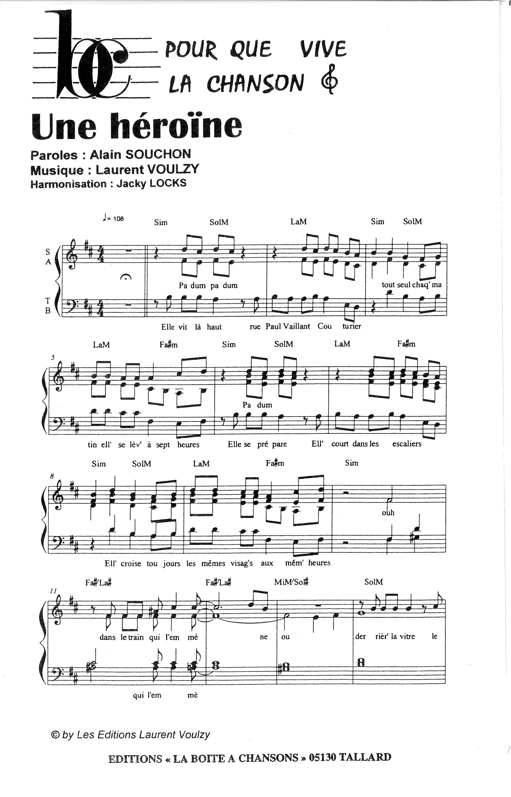 Paroles et musique de SOUCHON/VOULZY Harmonisation : Jacky LOCKS