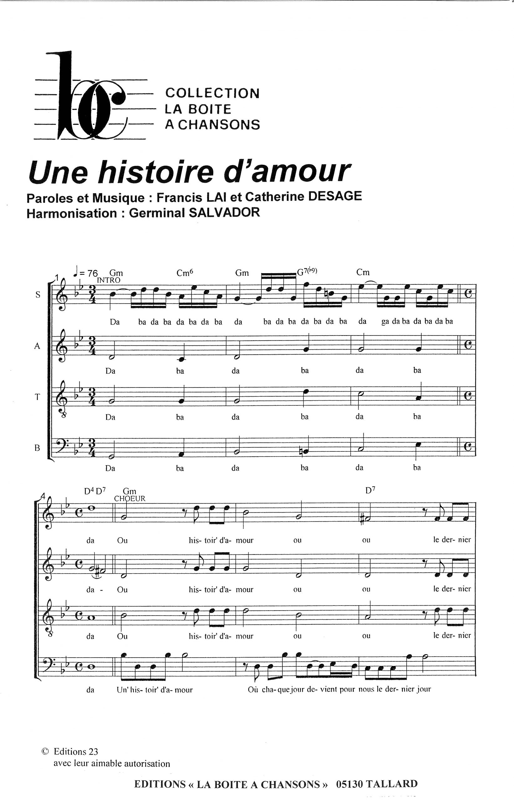 Paroles et musique de DESAGE/LAI Harmonisation : Germinal SALVADOR