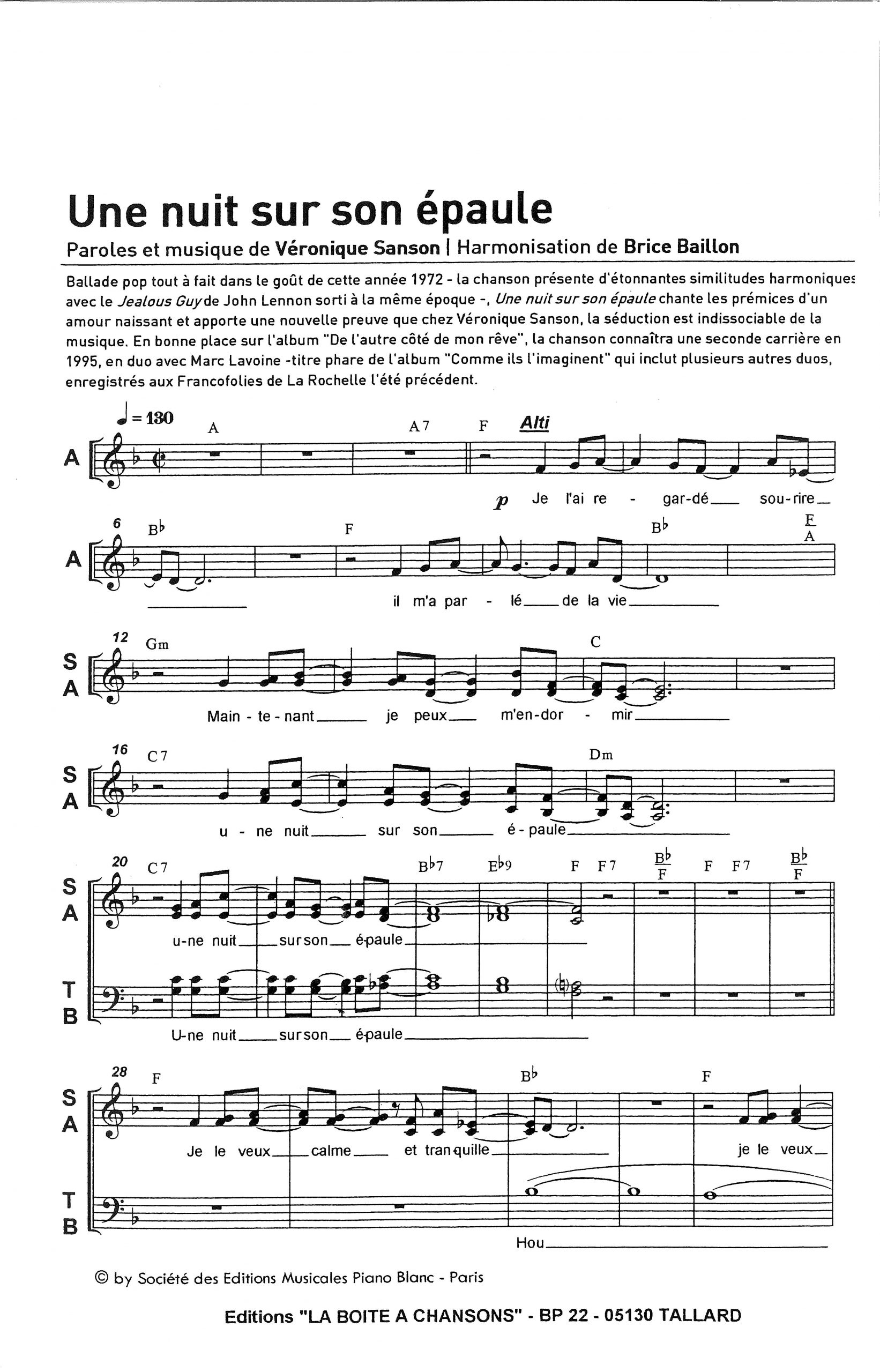 Paroles et musique de SANSON Harmonisation : Brice BAILLON