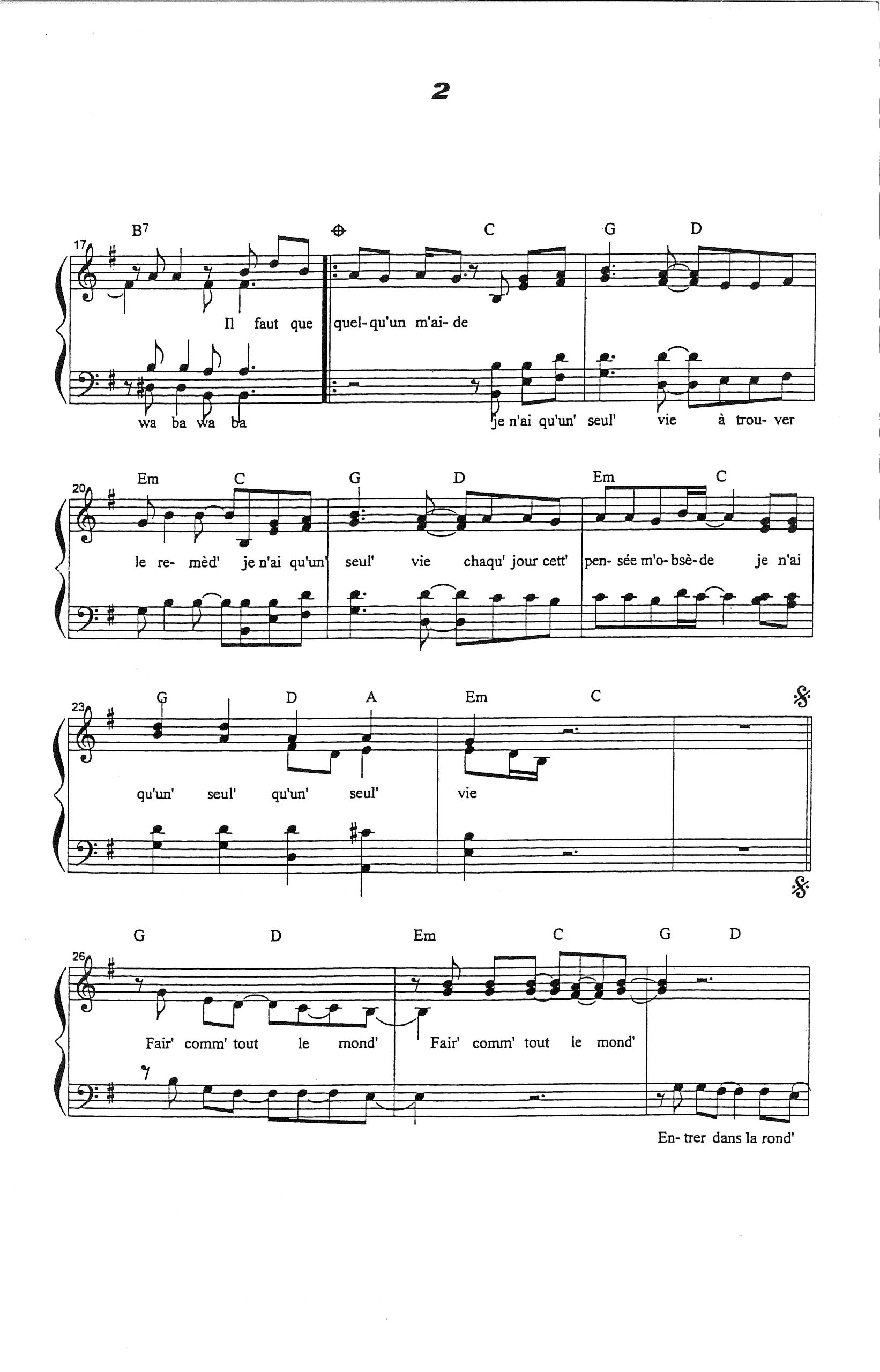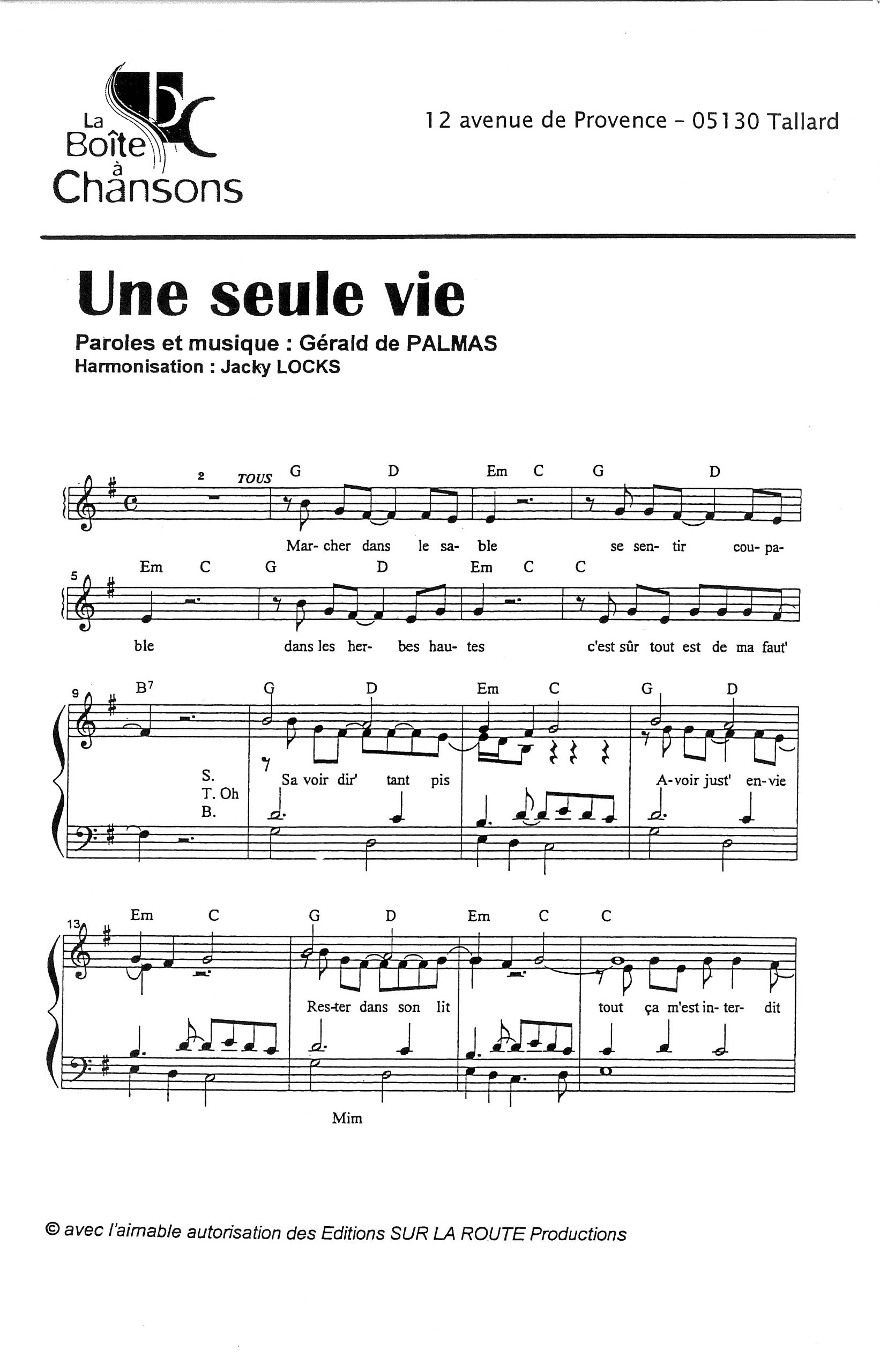 Paroles et musique de DE PALMAS Harmonisation : Jacky LOCKS