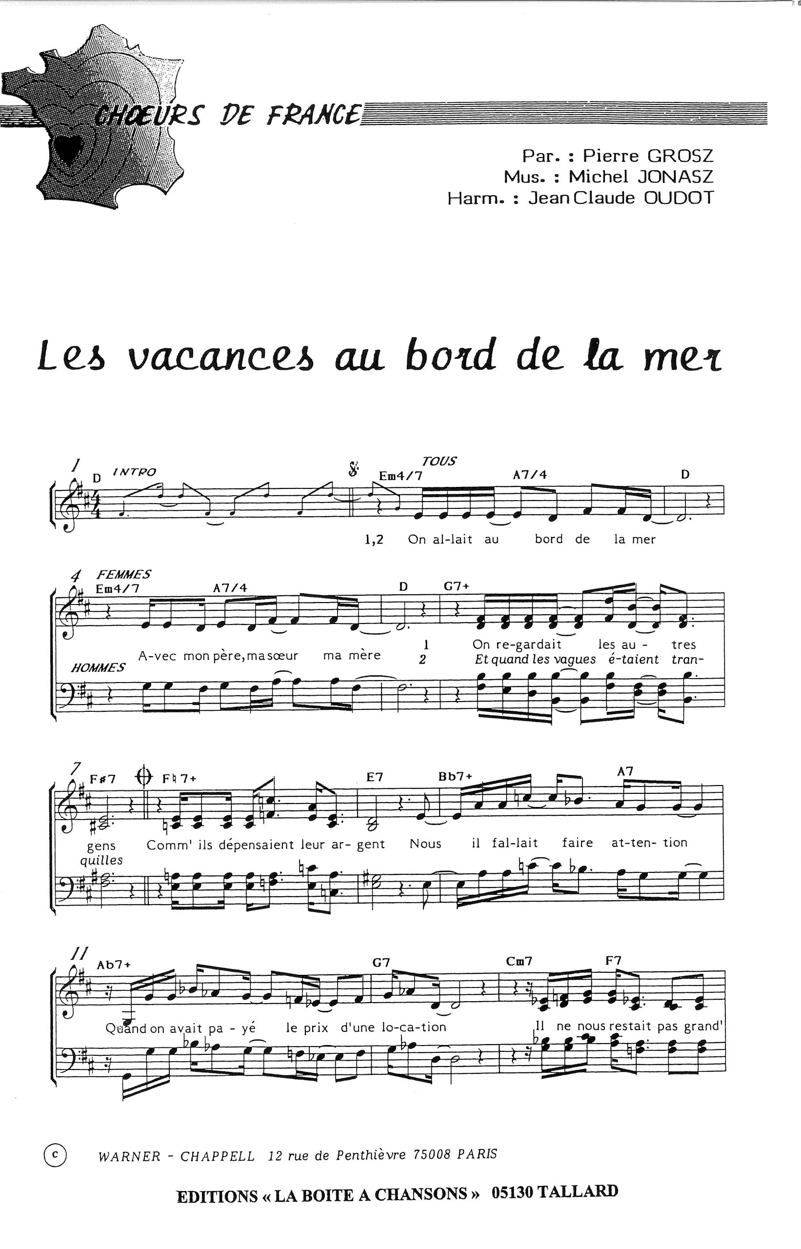Paroles et musique de GROSZ/JONASZ Harmonisation : Jean Claude OUDOT