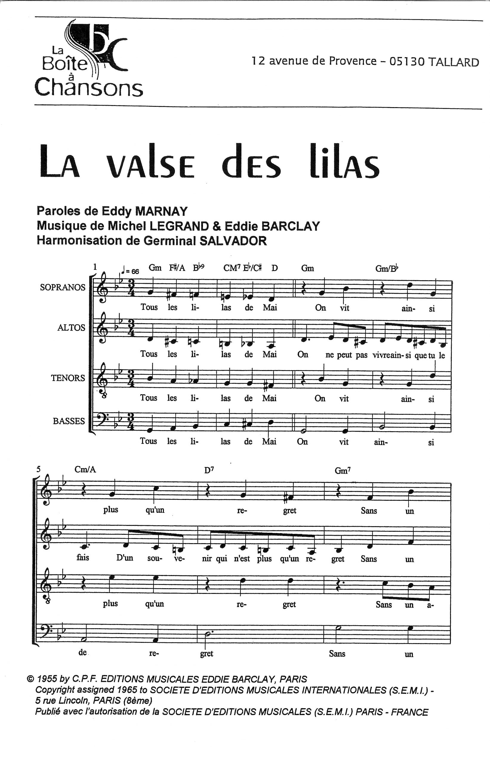 Paroles et musique de MARNAY/LEGRAND/BARCLAY Harmonisation : Germinal SALVADOR