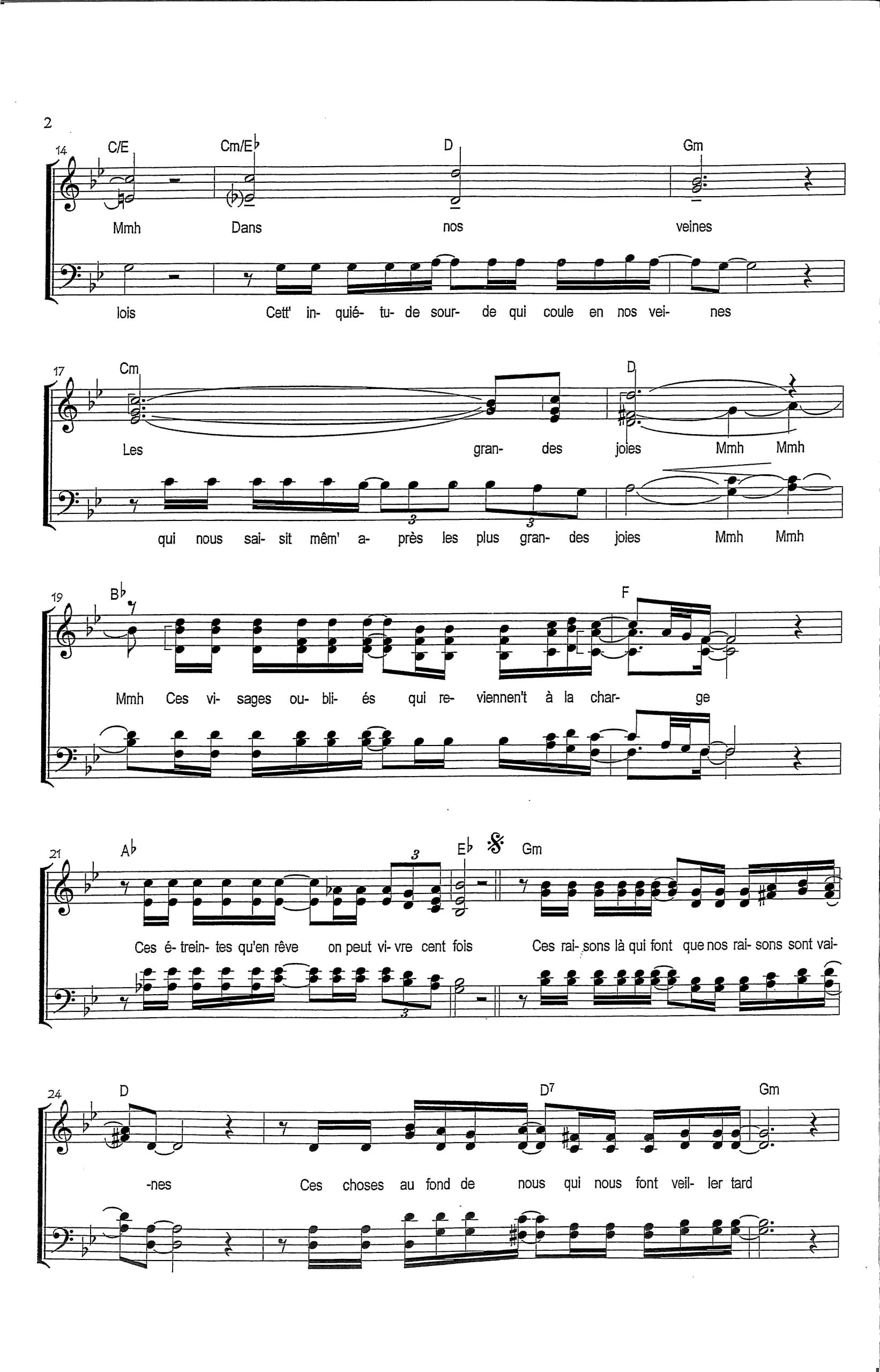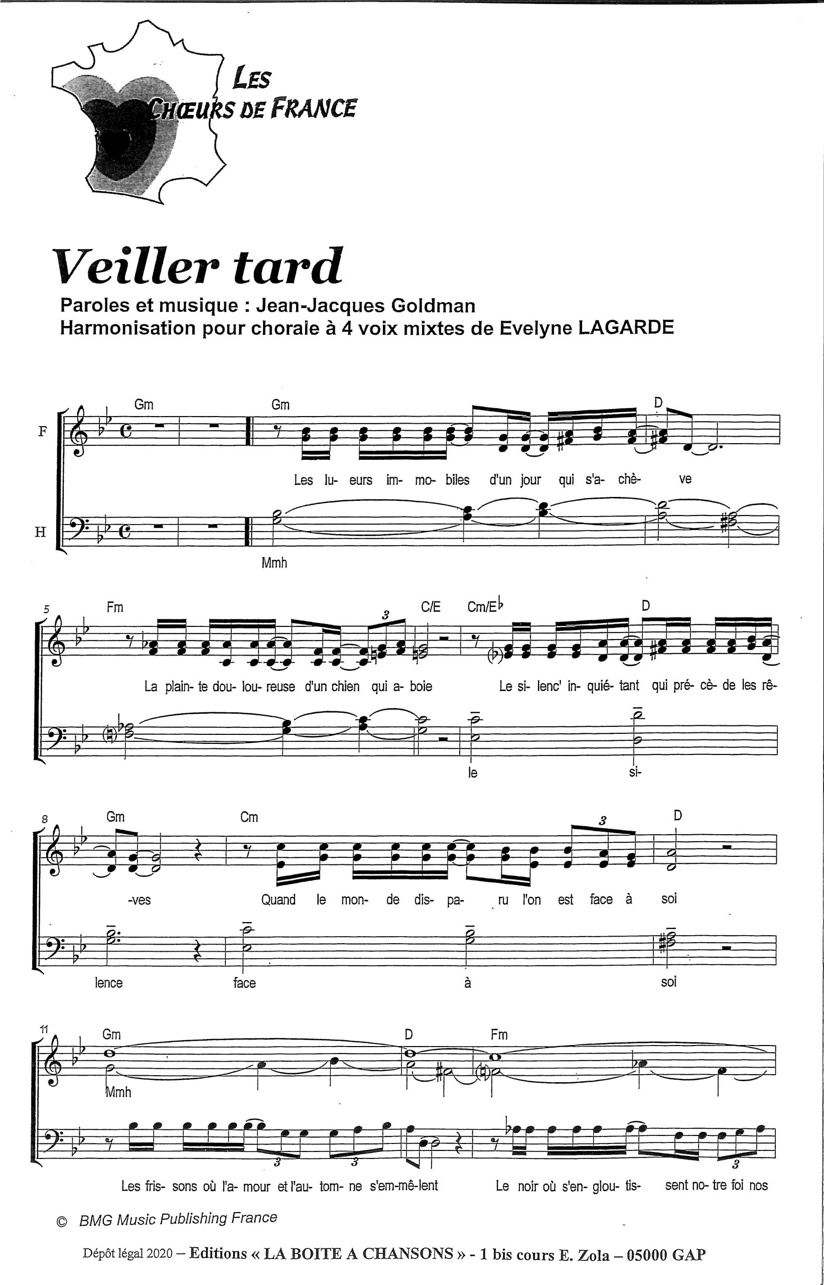 Paroles et musique : J.J. Goldman Harmonisation : Evelyne Lagarde