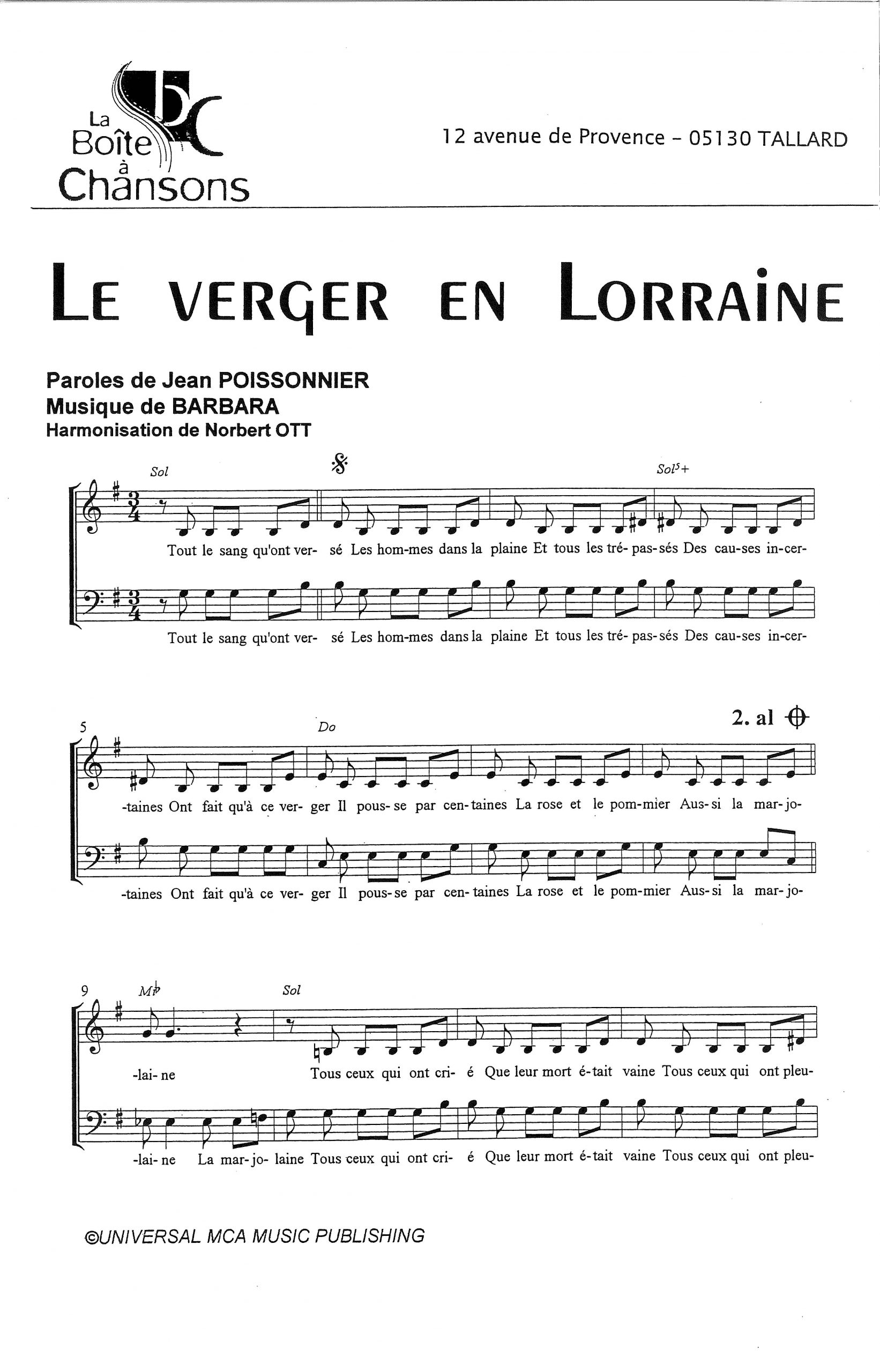 Paroles et musique de POISSONNIER/BARBARA Harmonisation : Norbert OTT