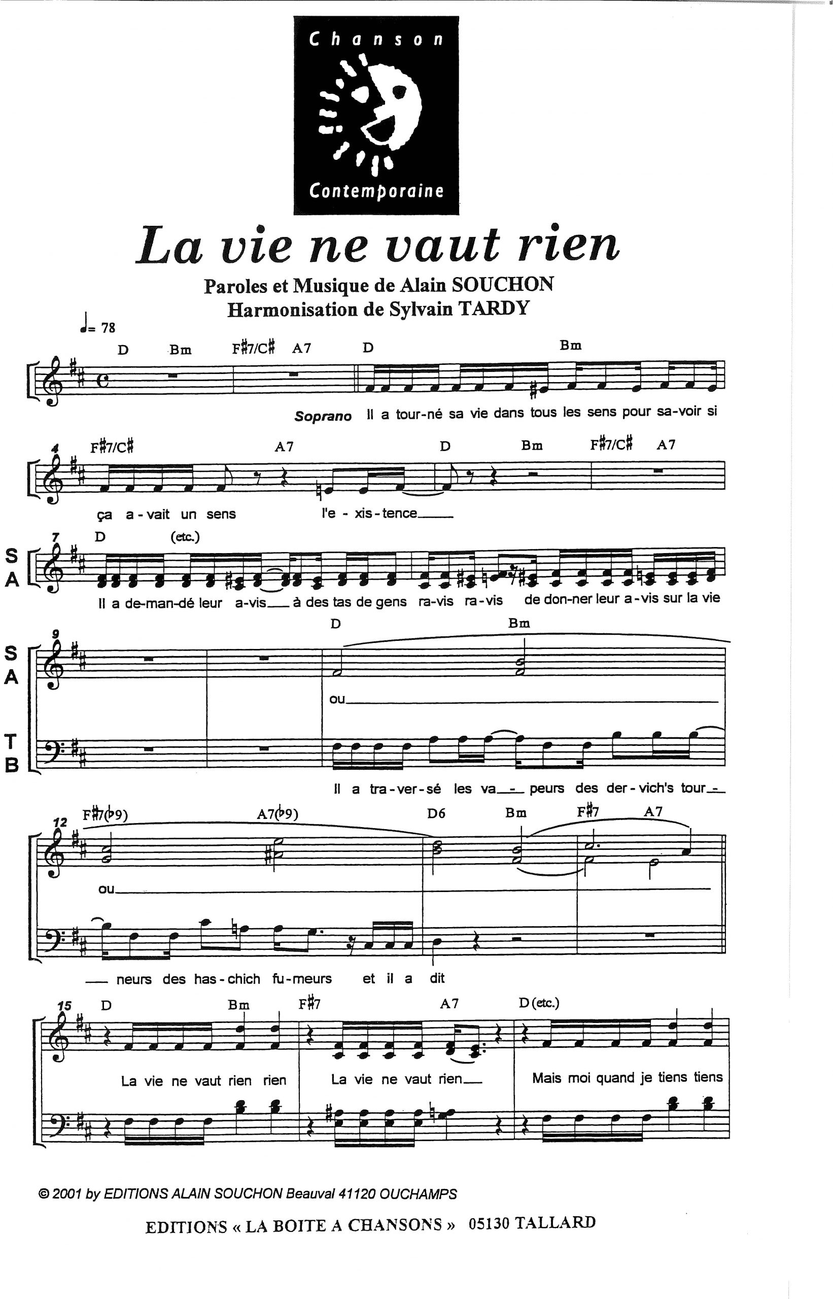 Paroles et musique de SOUCHON Harmonisation : Sylvain TARDY