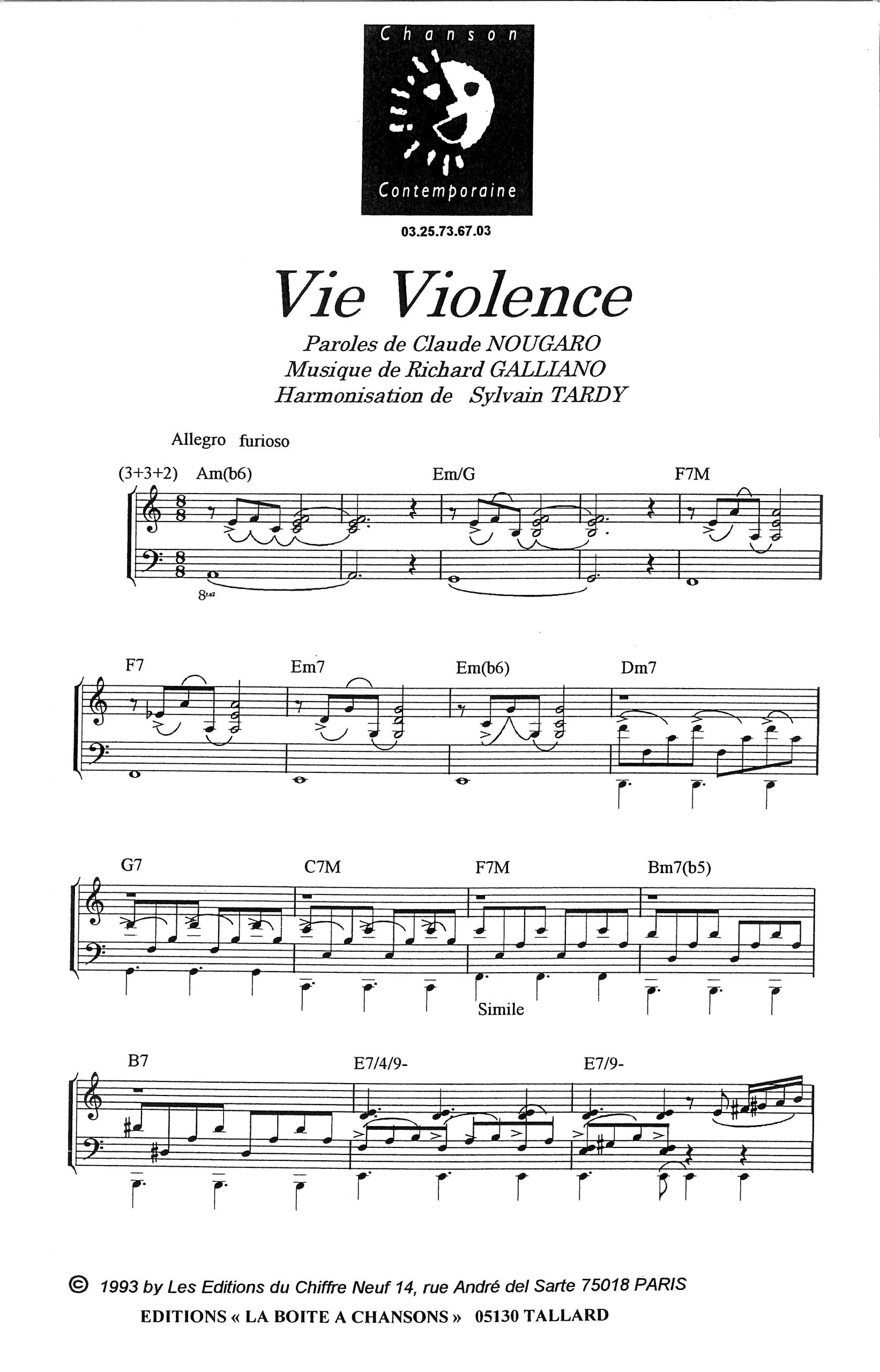 Paroles et musique de NOUGARO/GALLIANO Harmonisation : Sylvain TARDY