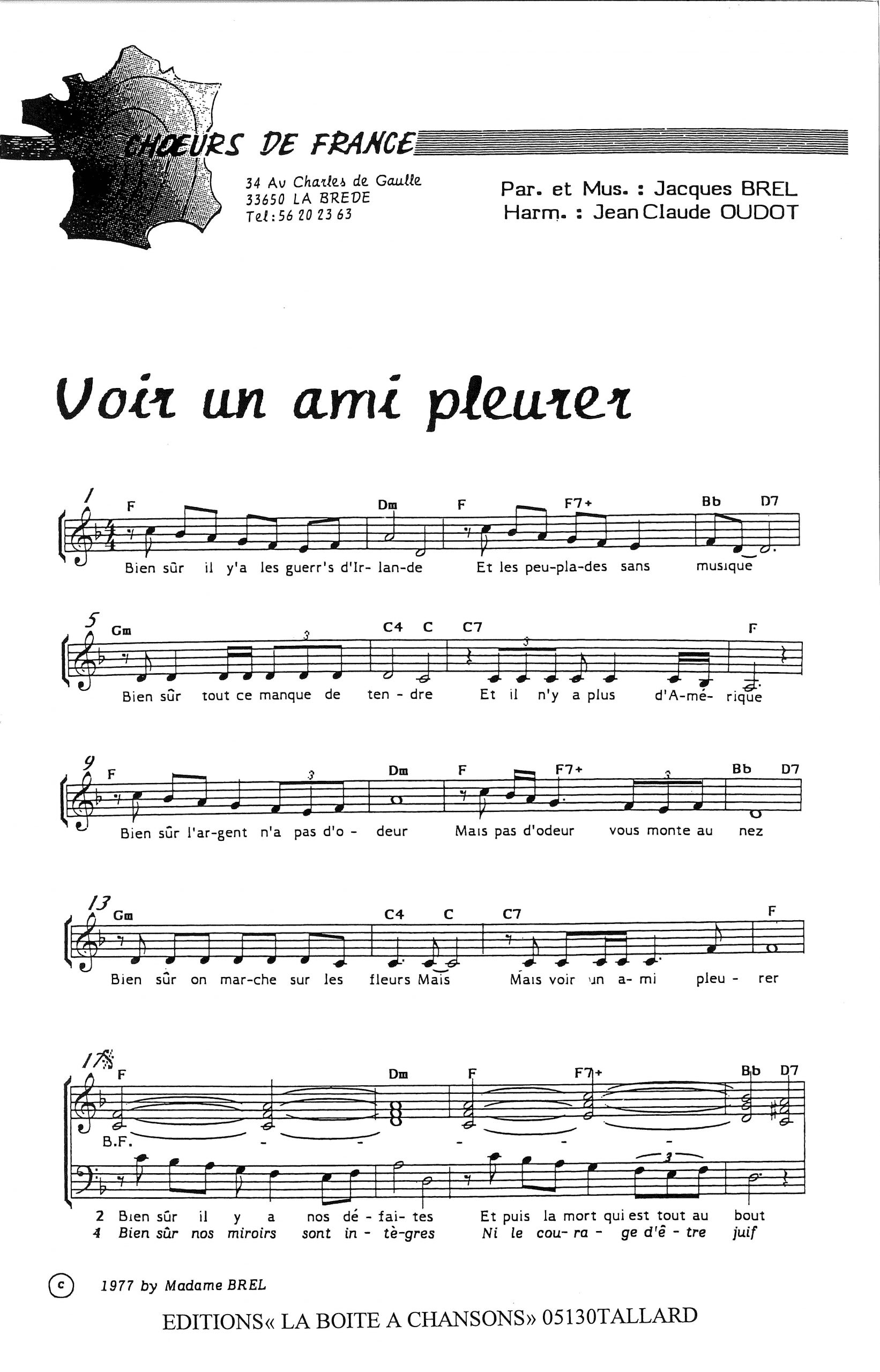 Paroles et musique de BREL Harmonisation : Jean Claude OUDOT