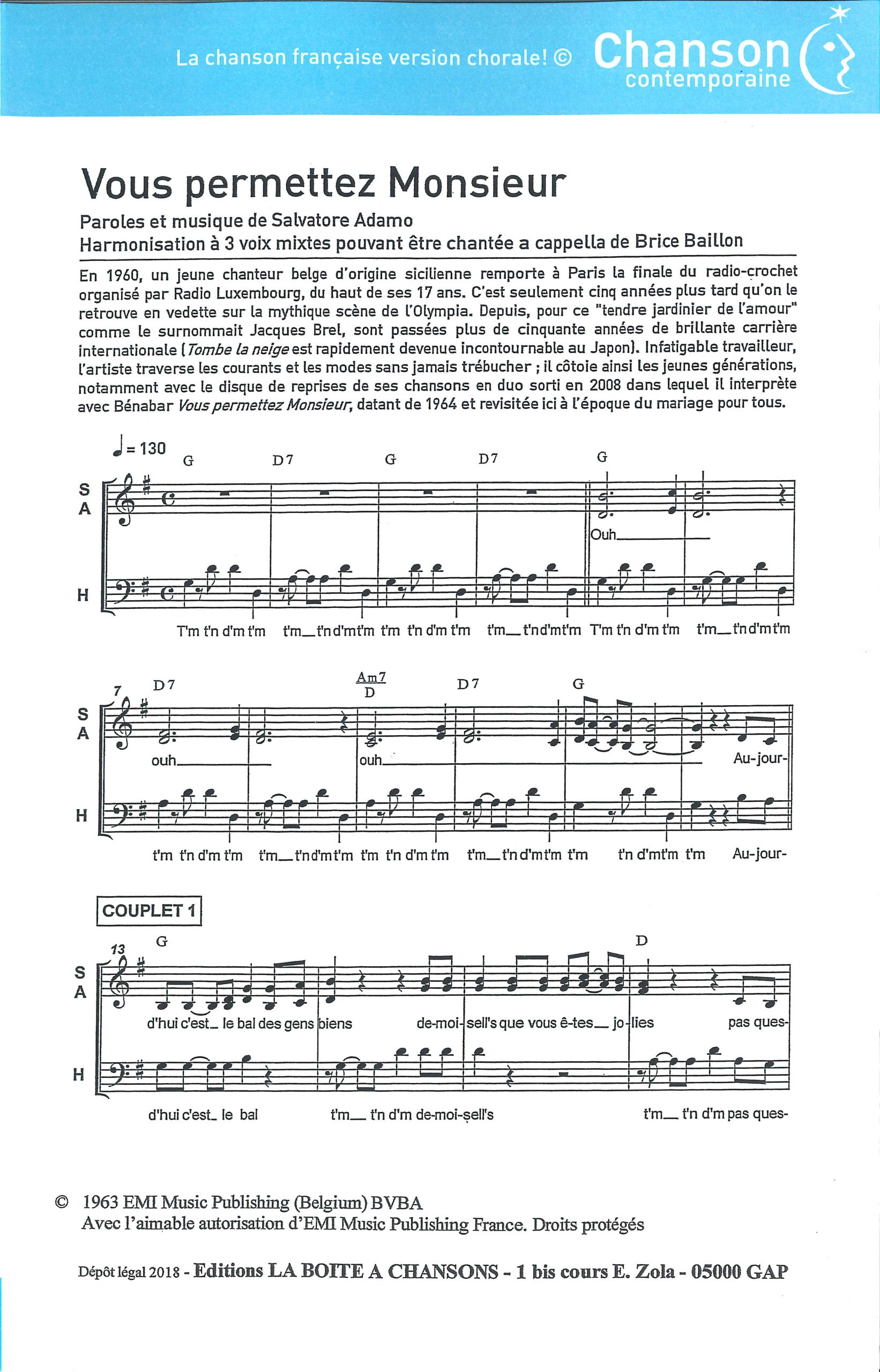 Paroles et musique : Adamo Harmonisation : Brice Baillon