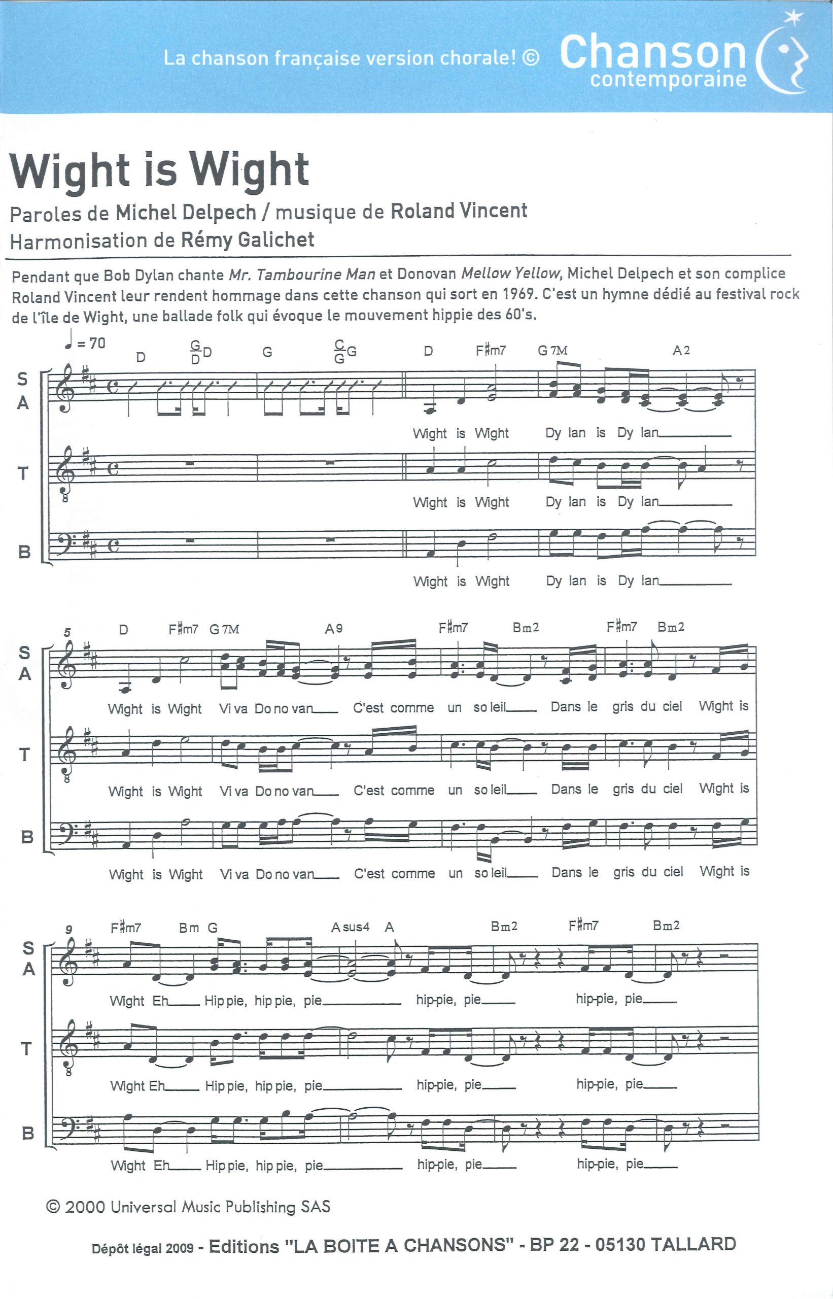 Paroles et musique : M. Delpech / R. Vincent Harmonisation : Rémy GALICHET