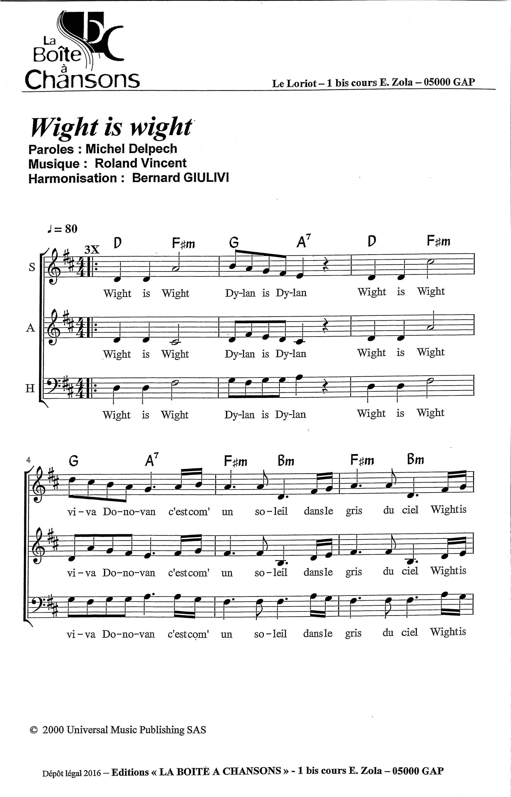 Paroles et musique : M. Delpech / R Vincent Harmonisation : Bernard GIULIVI