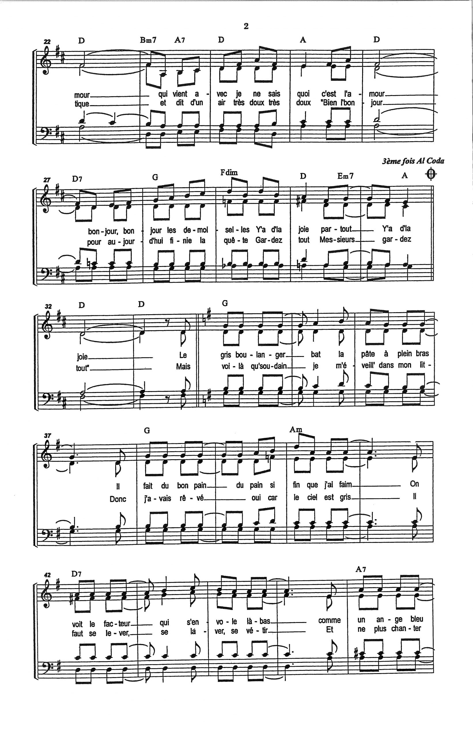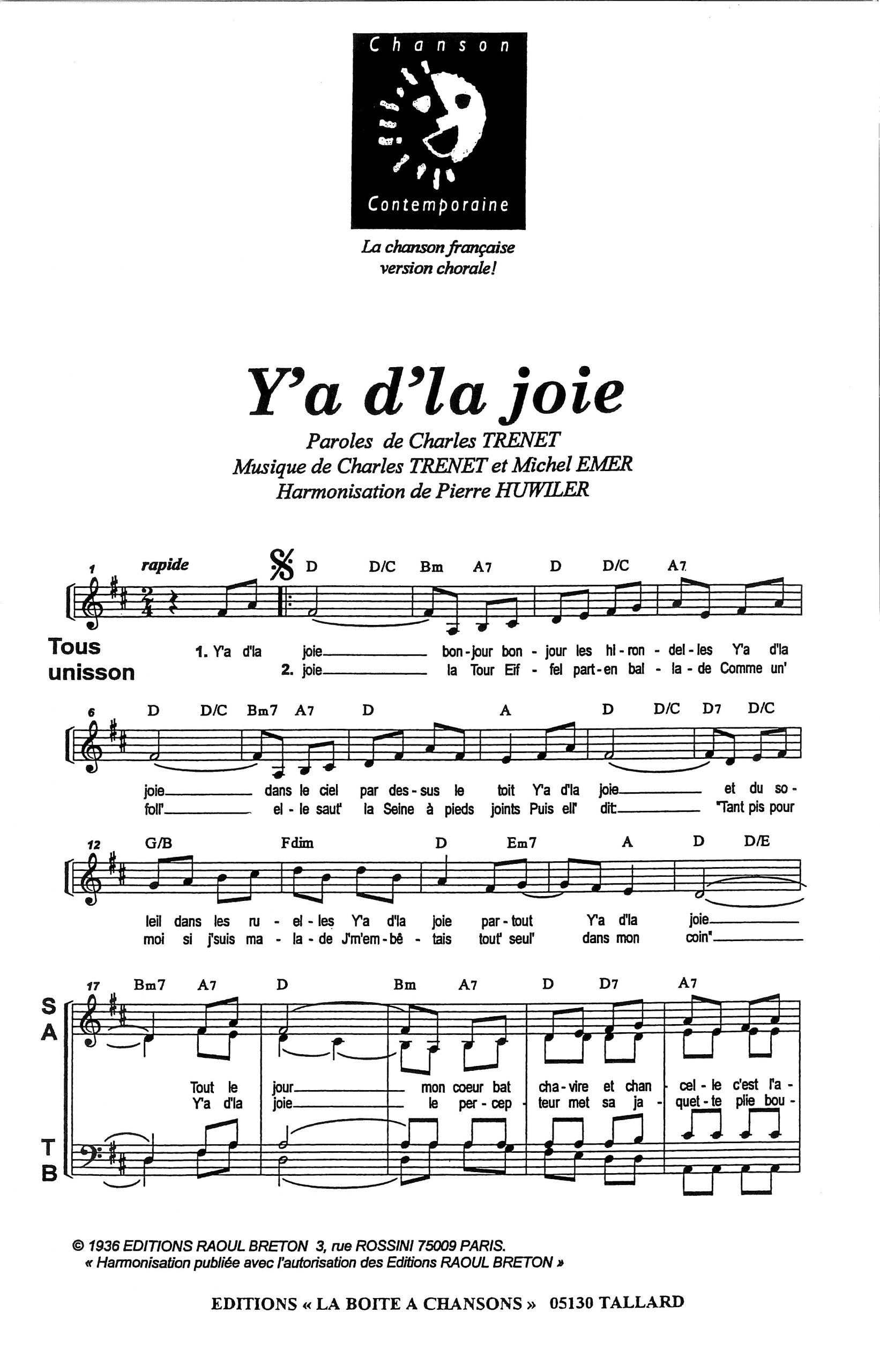 Paroles et musique de TRENET/EMER Harmonisation : Pierre HUWILER