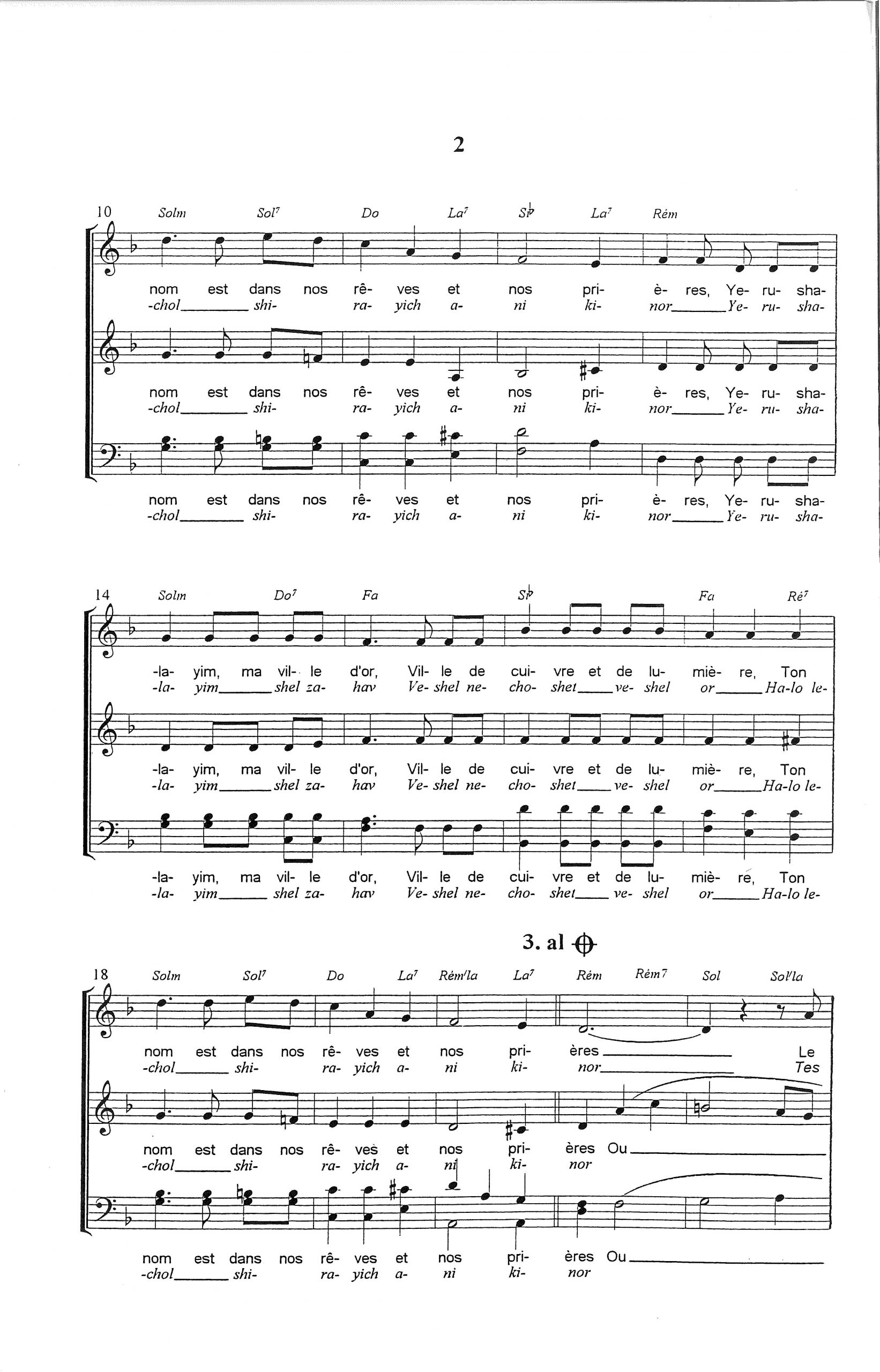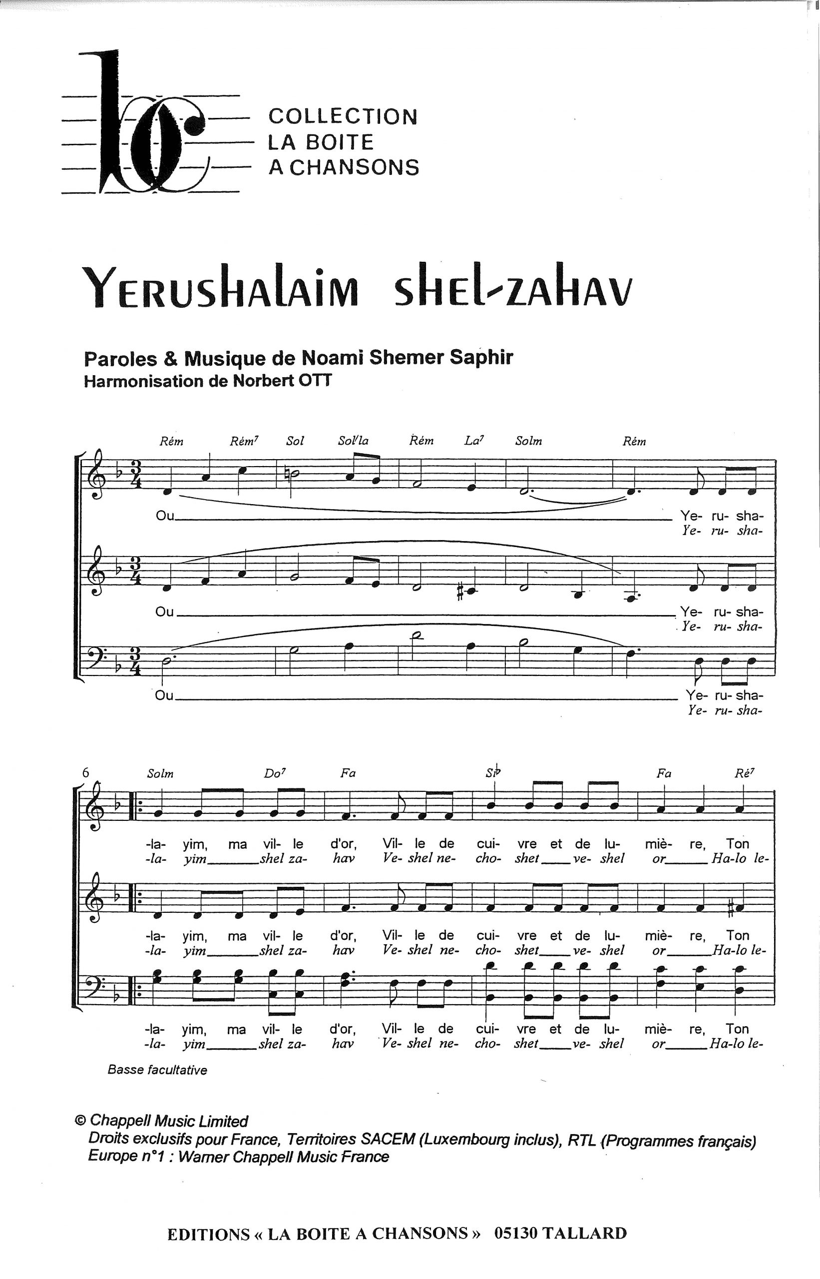 Paroles et musique de NOAMI SHEMER Harmonisation : Norbert OTT