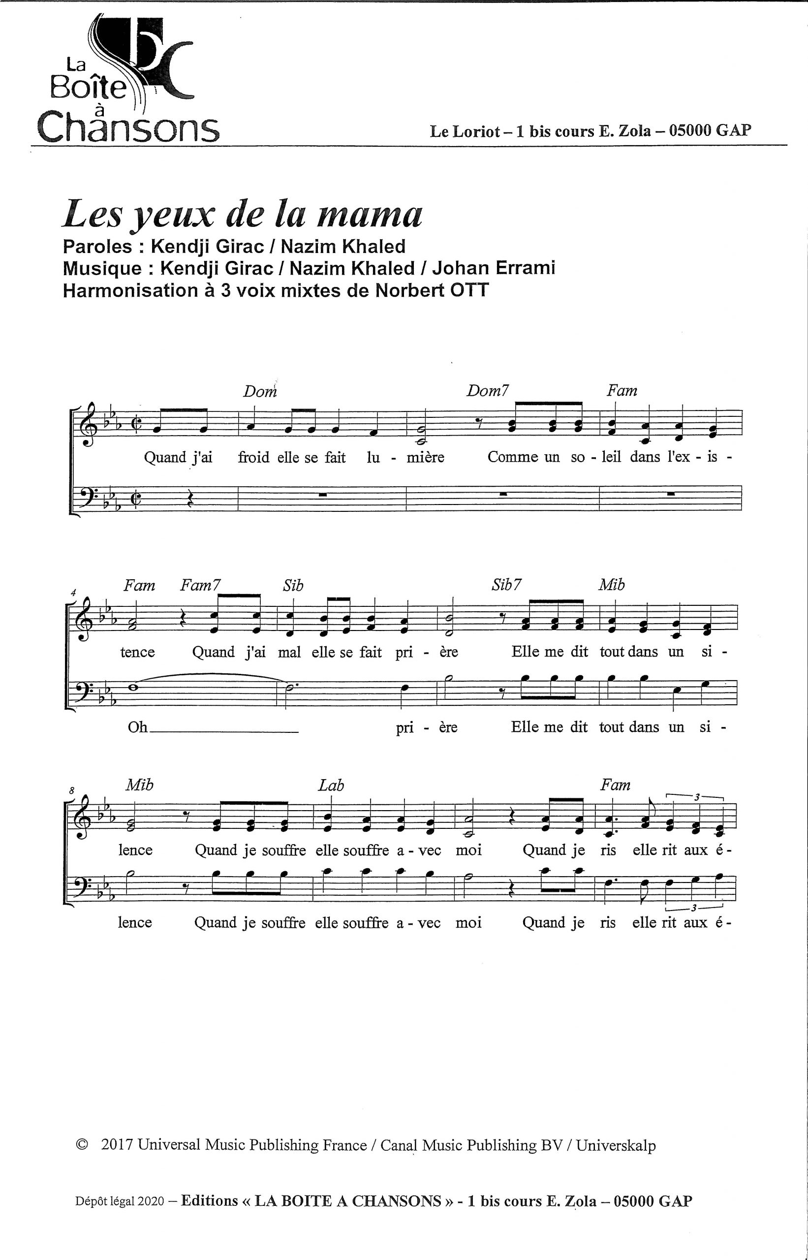 Paroles et musique : K. Girac / N. Khale / J. Errami Harmonisation : Norbert Ott