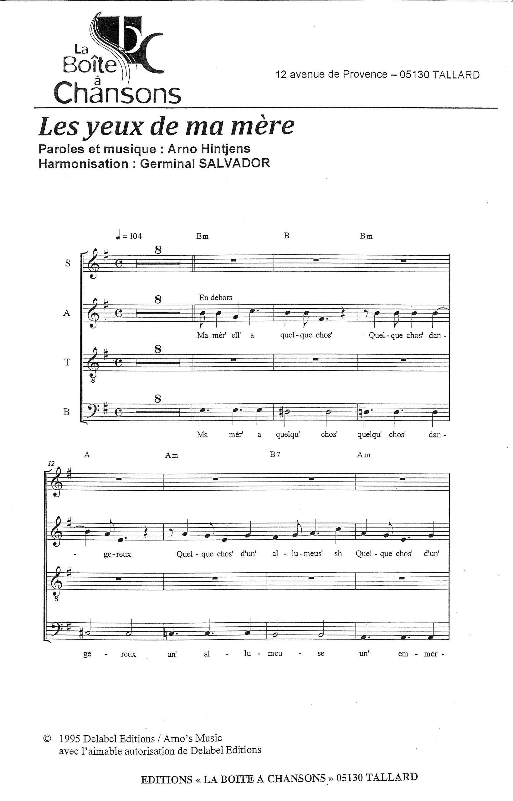 Paroles et musique de ARNO Harmonisation : Germinal SALVADOR